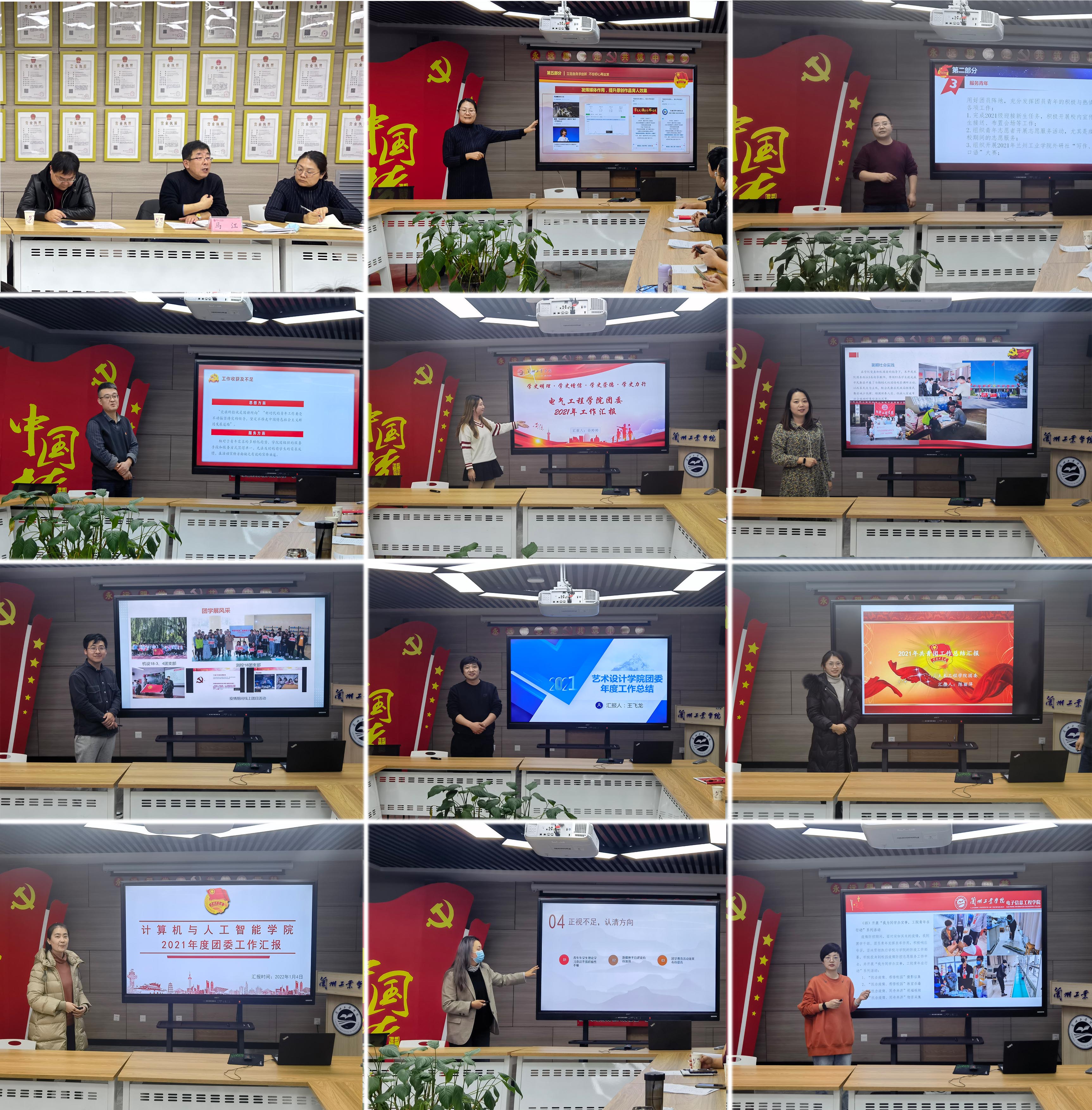 会上,校团委负责同志首先就2021年度我校共青团各项工作进行总结并就述职评议考核进行说明。2021年度基层团组织书记述职评议考核坚持全面考核和重点评价相结合,由党委学工部、校团委相关人员和团员青年代表组成述职评议考核小组,包括学院团委自评、学生评价、述职评议、结果公示等环节。随后,11个学院团委书记分享交流了学习贯彻落实党的十九届六中全会精神的心得体会,同时结合《2021年度兰州工业学院共青团重点工作量化指标清单》,从聚焦思想政治引领、联系服务青年、围绕中心服务大局、着力深化改革、基层团组织规范化建设、拓宽实践育人平台、繁荣校园文化等方面列数据、举实例、谈做法、点问题,全面总结过去一年工作成绩和存在不足,并对2022年度共青团重点工作进行谋划。与会人员同时通过问卷星软件对2021年基层团组织工作进行了民主测评和量化考核。