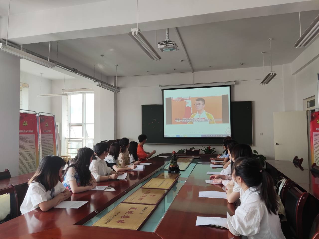 校团委副书记李雯娟说:“收听收看庆祝大会、聆听学习习近平总书记讲话,让我深受鼓舞、倍感振奋,深知责任重大、使命光荣。百年征程中,共青团坚定理想信念听党话,矢志不渝跟党走,形成了宝贵经验。作为高校共青团干部,我们要铸牢对党忠诚的政治品格,对标总书记讲话中对团干部的要求,努力成为“心境澄明,心力茁壮”、“不尚虚谈、多务实功”、“多为青年计,少为自己谋”的“青年友”,聚焦共青团为党育人主责主业,教育引领团员青年深刻领悟“两个确立”的决定性意义,紧扣服务青年的工作生命线,履行巩固和扩大党执政的青年基础的政治责任,不断保持和增强共青团的政治性、先进性、群众性,推动共青团改革向纵深发展,探索基层团组织建设新思路新模式,以优异成绩迎接党的二十大胜利召开。