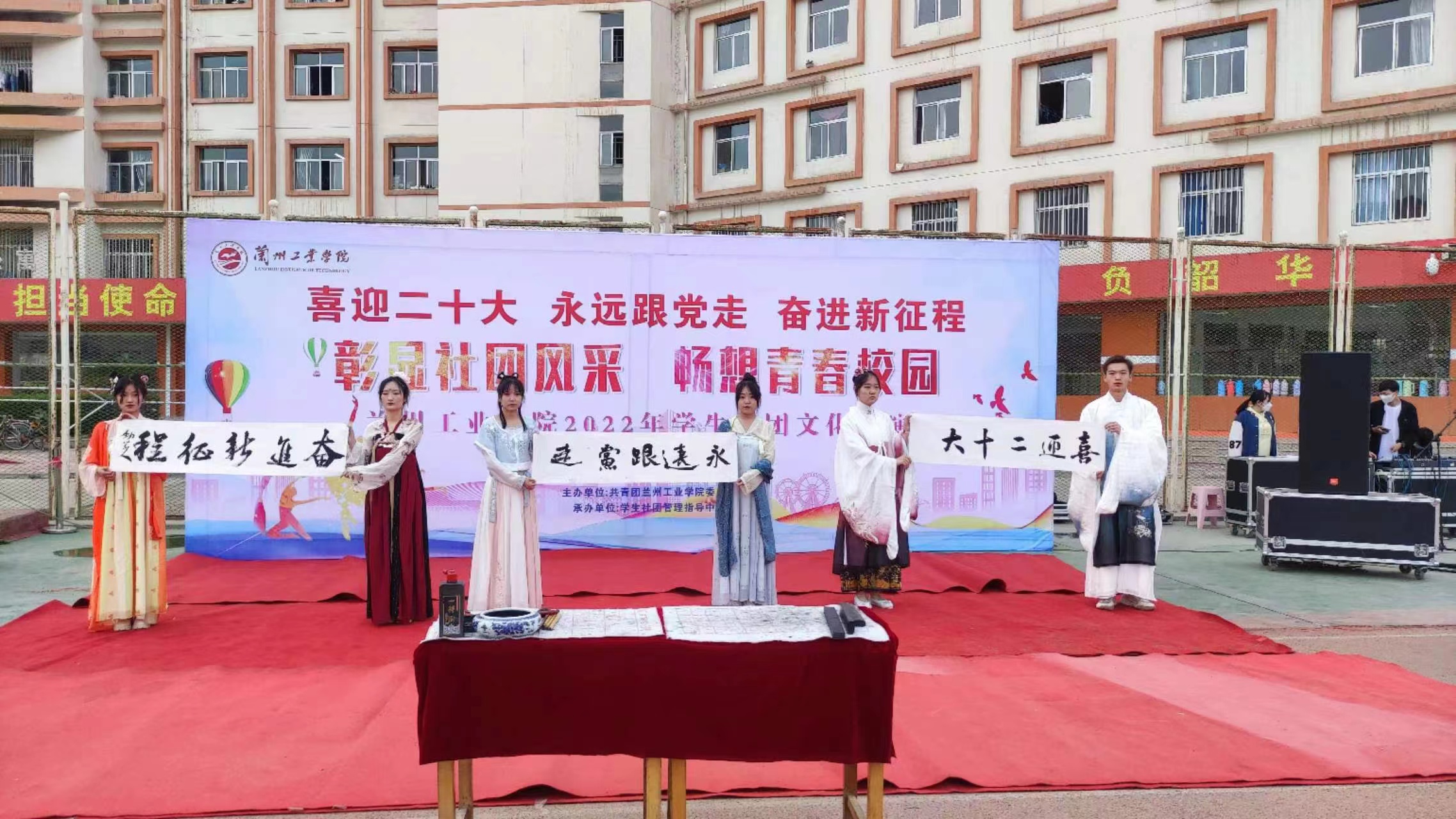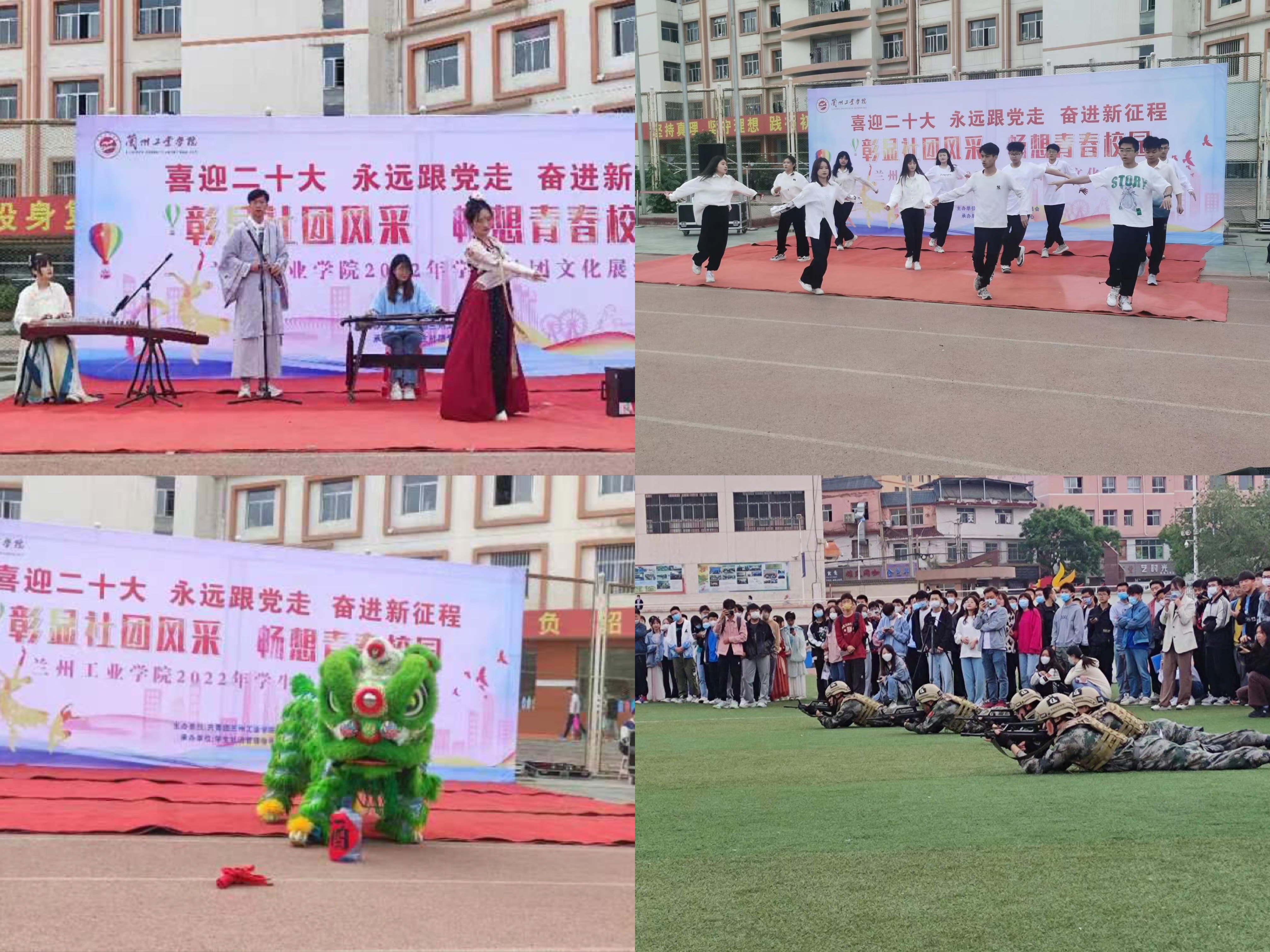 此次学生社团文化展演为我校庆祝共青团成立100周年“喜迎二十大 永远跟党走 奋进新征程”主题教育实践活动之一。全校57个学生社团均参与其中,分为舞台类现场展示和展板展示等,节目形式多种多样,包括书画剪纸现场表演、合唱、快板、舞狮、汉服走秀、乐器演奏、舞蹈、武术表演等,既是学生社团集中的风采展示,同时又充分发挥学生社团实践育人功能。