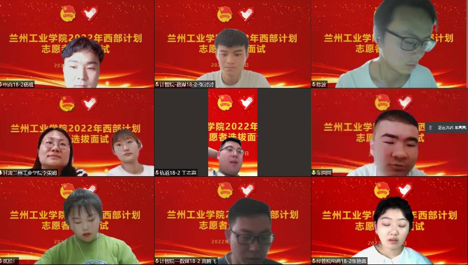 5月23日下午,为进一步规范实施大学生志愿服务西部计划志愿者招募选拔工作,校团委举行志愿者选拔线上面试和心理测试,学生处、校团委相关工作人员承担面试和心理测试评审工作。
