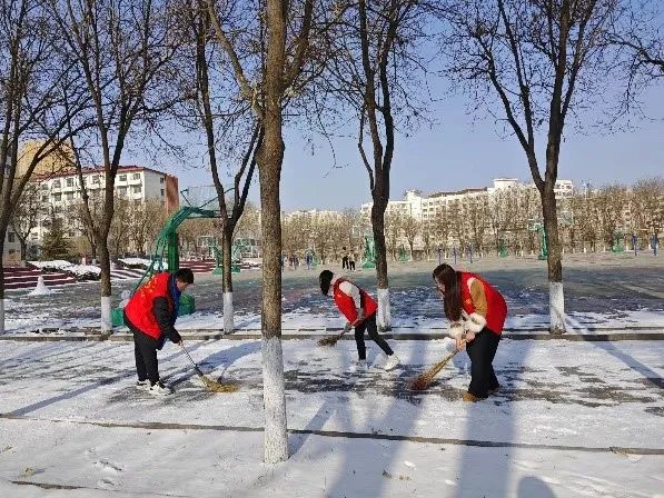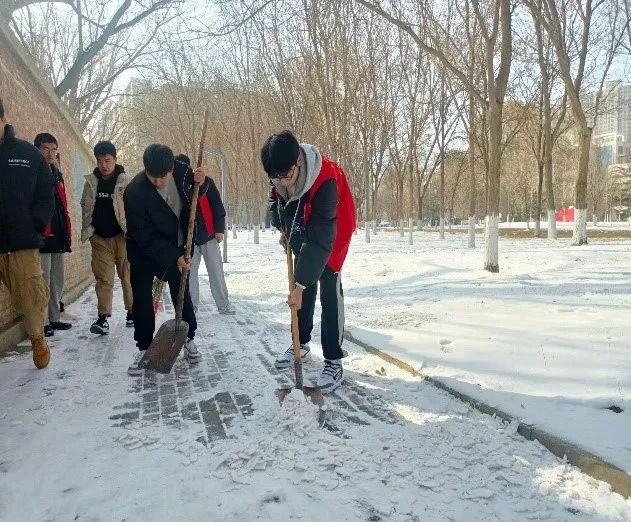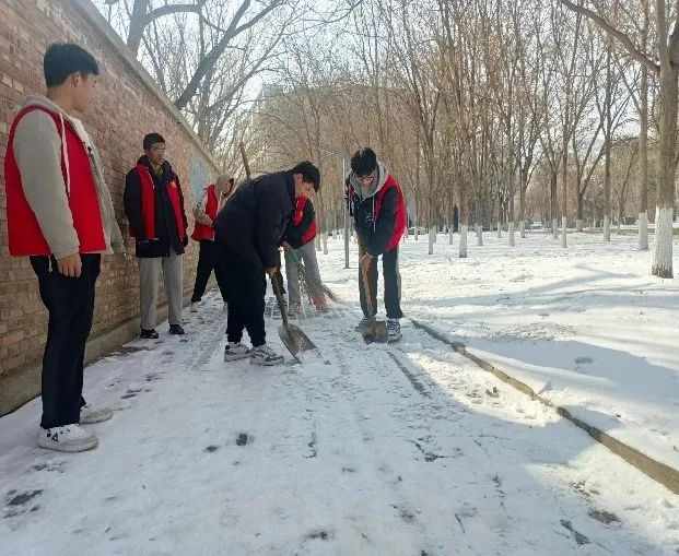 在校团委的积极号召下,我校的志愿者们纷纷积极响应,踊跃参与除雪破冰行动。他们齐心协力,不畏严寒,共同清扫校园内的积雪,确保了校园的安全与畅通,共同筑牢了校园安全屏障,为学校的稳定发展贡献了自己的力量。