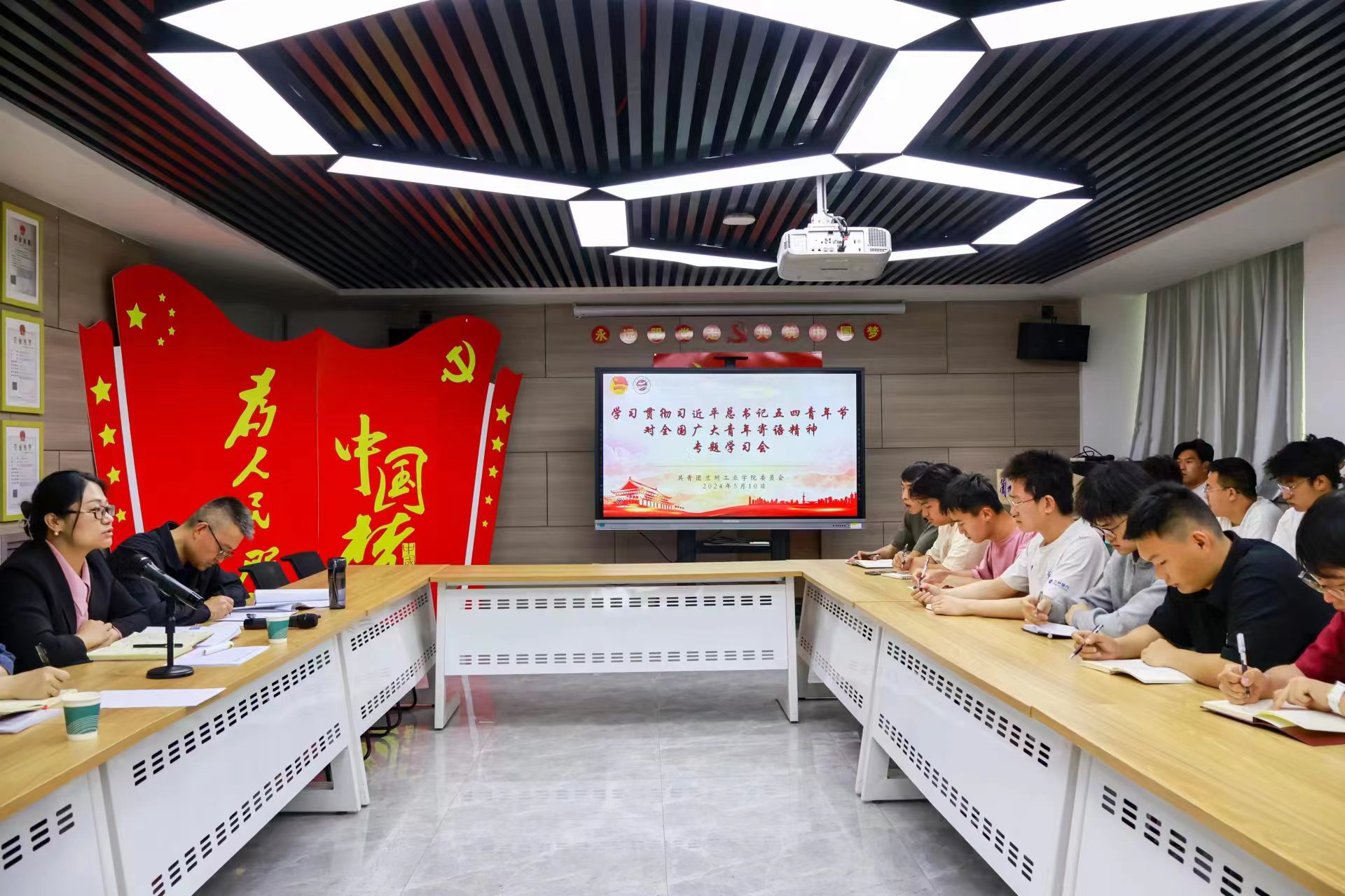 五四前夕,中共中央总书记、国家主席、中央军委主席习近平代表党中央,向全国广大青年致以节日祝贺和诚挚问候。习近平总书记强调,广大青年要继承和发扬五四精神,坚定不移听党话、跟党走,争做有理想、敢担当、能吃苦、肯奋斗的新时代好青年,在推进强国建设、民族复兴伟业中展现青春作为、彰显青春风采、贡献青春力量,奋力书写为中国式现代化挺膺担当的青春篇章。5月10日,校团委在创新创业学院一楼路演大厅召开“深入学习宣传贯彻习近平总书记五四青年节对全国广大青年寄语精神”座谈会。各二级学院团委书记、副书记,校院两级学生会工作人员、团学干部代表共计30余人参会。