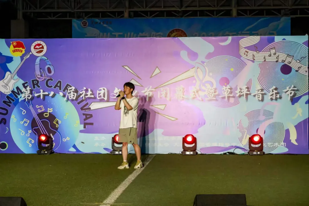 5月17日举行草坪音乐节,交错的光束点亮夜空,五彩的灯光与跃动的音符交相辉映,现场观众挥舞着荧光棒随音乐节拍律动,酷炫的灯光秀点燃了现场。由高彬彬同学带来的歌曲《晴天》它不仅是一首歌,更是一段美好的回忆,让我们想起了那些阳光灿烂的日子,想起了那些陪伴我们走过青春的人。张廷熠带来的歌曲《鼓楼》它是城市的脉搏,是历史的见证,也是情感的寄托。每当夜幕降临,那悠扬的钟声仿佛穿越了时空,诉说着古老的故事,回荡在我们的心间。一曲《少年》唤醒了我们每个人青春,青春是一段美好的时光,少年是这段时光中最耀眼的星辰。他们怀揣着梦想,充满活力和朝气,勇敢地追逐着属于自己的未来。周杰伦、薛之谦、凤凰传奇……一首首美妙的旋律,余音绕梁,三日不绝。本届社团文化节闭幕式暨草坪音乐节通过形式新颖、内容丰富的活动展示各学生社团昂扬向上的精神风貌,彰显我们工院学子的青春朝气,独具特色的校园文化。