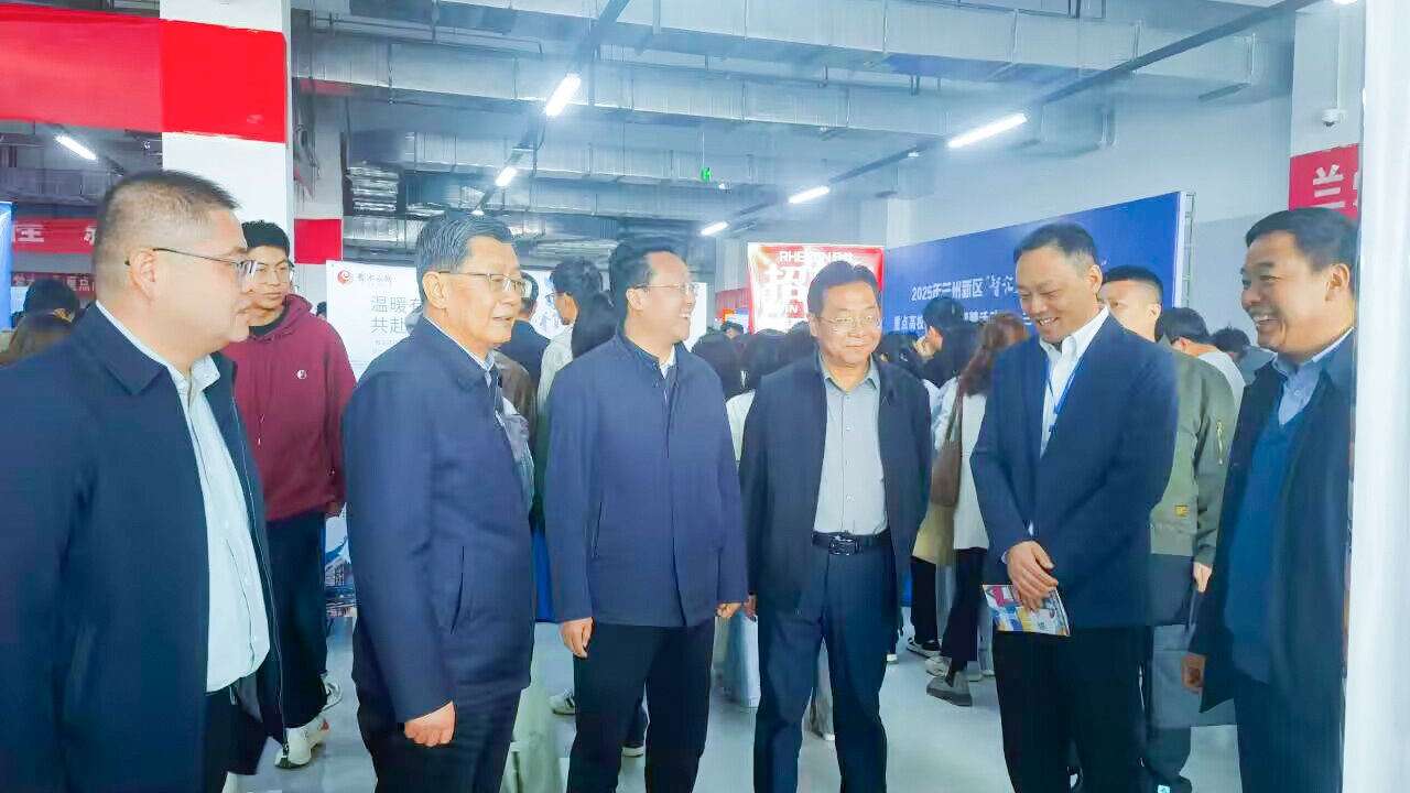董开鹏一行先后调研参加了学校2025届毕业生春季双选会、特色大学生创新创业学生社团,深入了解学校思想政治引领、青年创新创业和学科发展带动双创人才培养等方面工作情况。