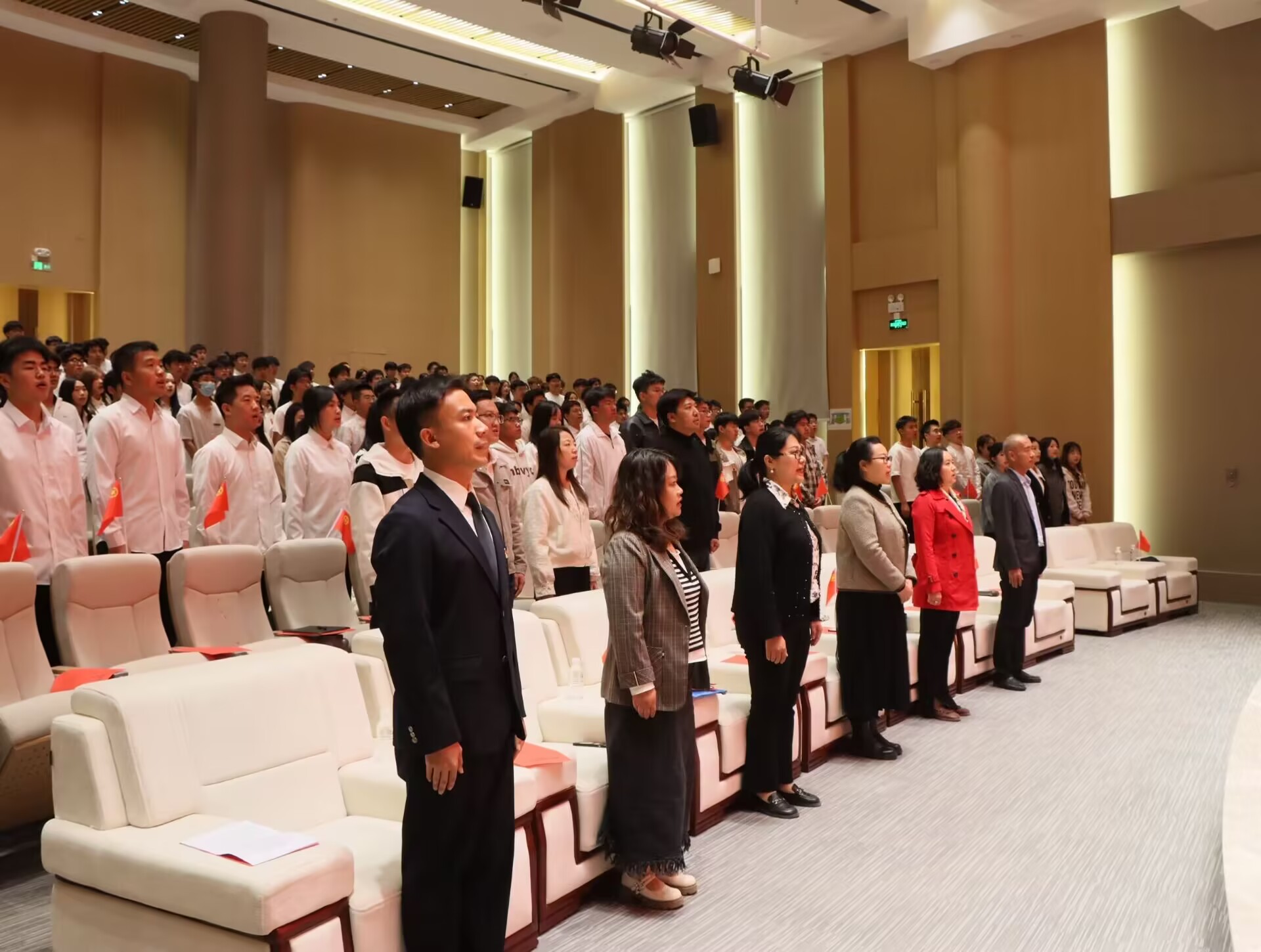 为深入贯彻习近平新时代中国特色社会主义思想和党的二十大精神,学习习近平总书记重要讲话精神和五四回信精神,5月8日下午,学校在图书馆报告厅举行“赓续五四薪火 青春挺膺担当”新发展团员示范性集中入团仪式暨思政团课。