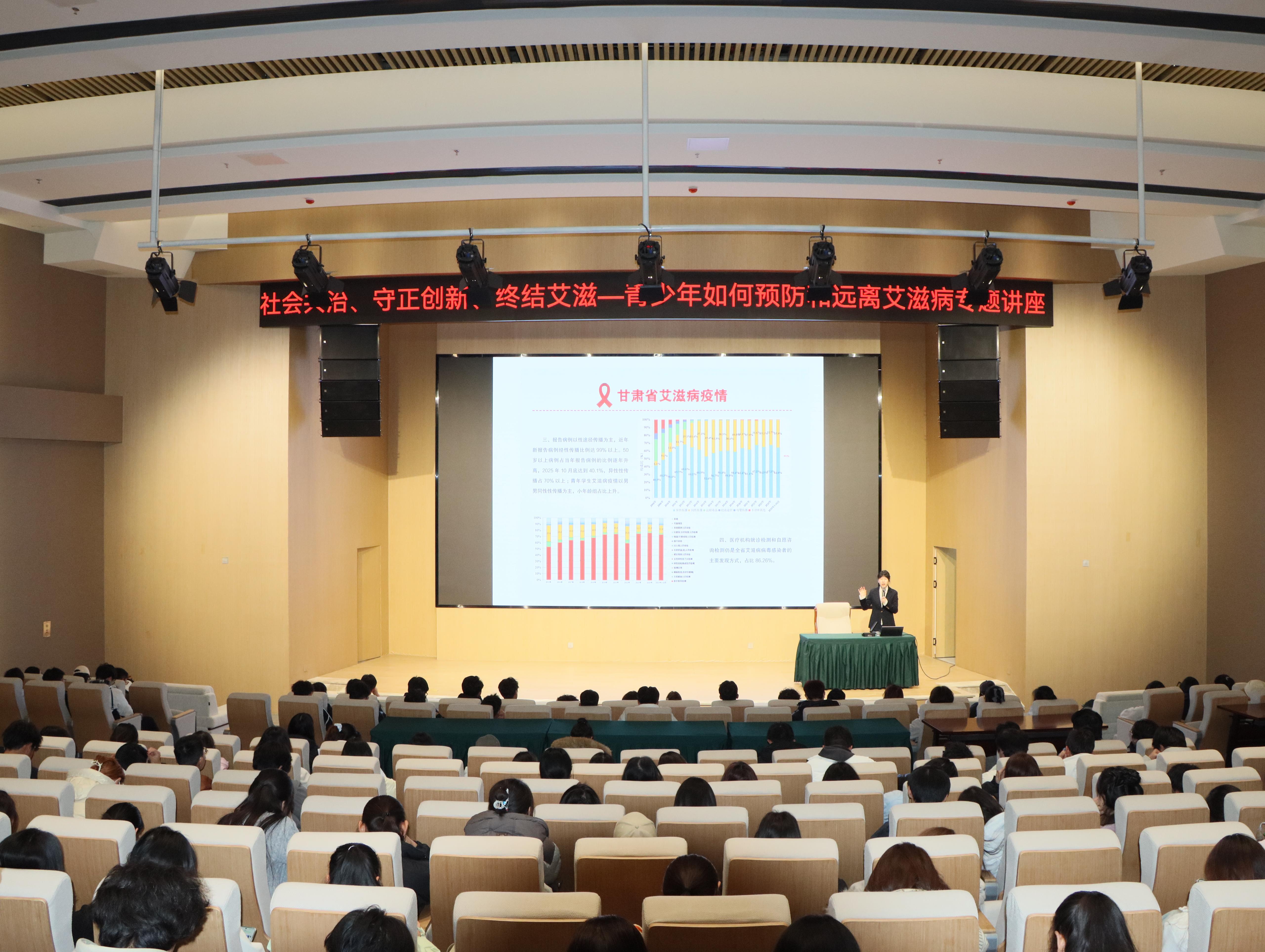 在第38个“世界艾滋病日”来临之际,为深入推进青少年艾滋病防治工作,切实提升青少年群体对艾滋病的科学认知与自我防护能力,我校于11月21日下午在新校区图书馆报告厅组织开展“青少年如何预防和远离艾滋病”主题讲座,讲座邀请甘肃省疾病预防控制中心性病艾滋病防治所副主任医师李莉主讲。