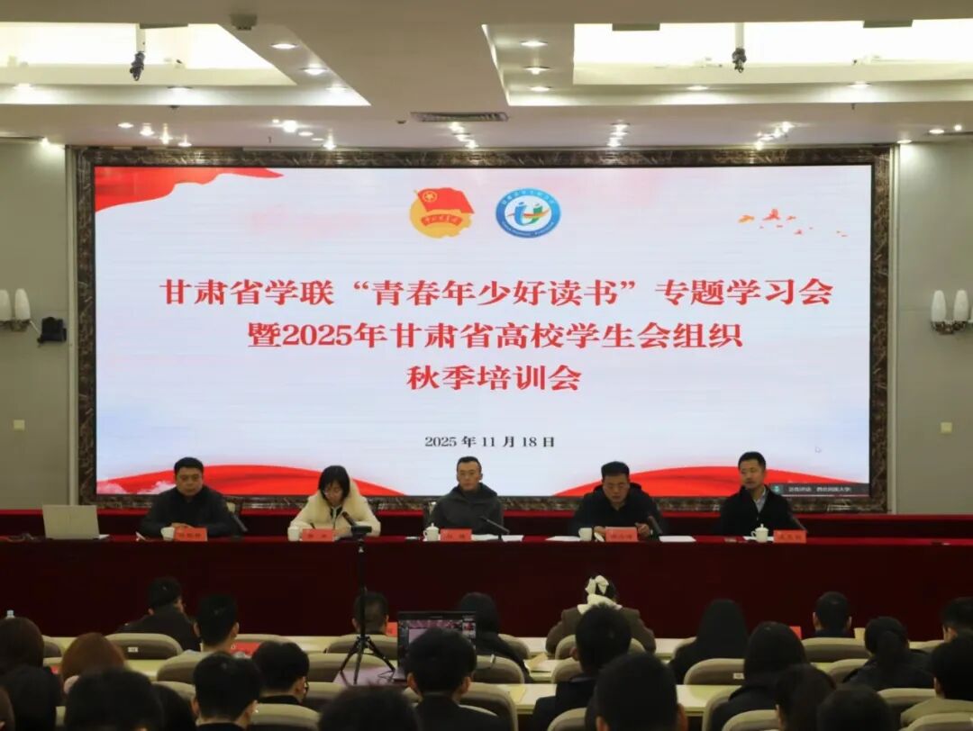 为深入学习贯彻习近平新时代中国特色社会主义思想和党的二十届四中全会精神,进一步提升高校学生会组织服务青年的能力,11月18日,由省学联主办的“青春年少好读书”专题学习会暨2025年甘肃省高校学生会组织秋季培训会在西北民族大学新村校区文津楼学术报告厅举行。我校团委相关负责人、省级“青马工程”学员及学生会主席团成员参与学习并作交流发言。