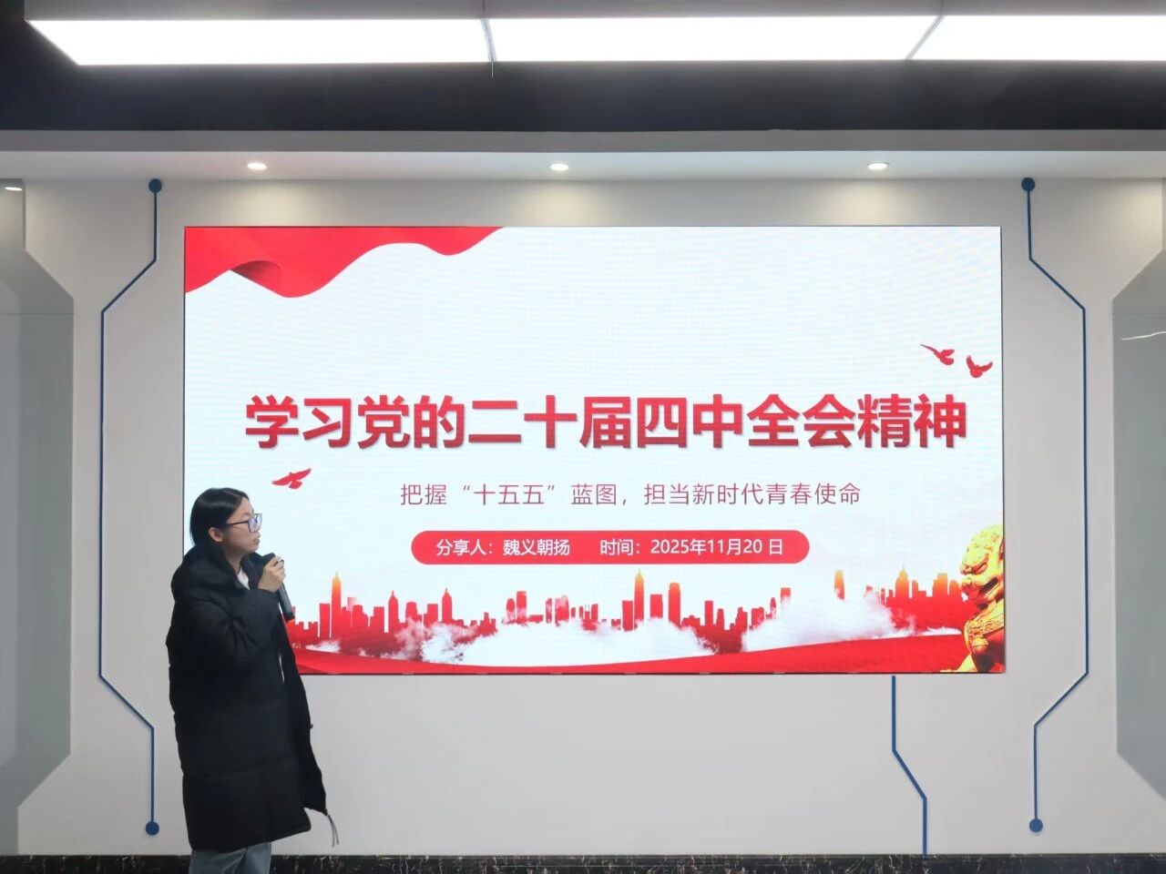 在交流环节,青马班学员代表结合党的二十届四中全会精神,围绕“争做中国式现代化建设青年先锋”“锤炼政治品格”“坚定文化自信”“强化科技创新”等主题展开热烈讨论,在思想碰撞中凝聚共识、明确方向。全体成员还共同学习了《党的二十届四中全会公报》核心内容,进一步增强了责任意识。