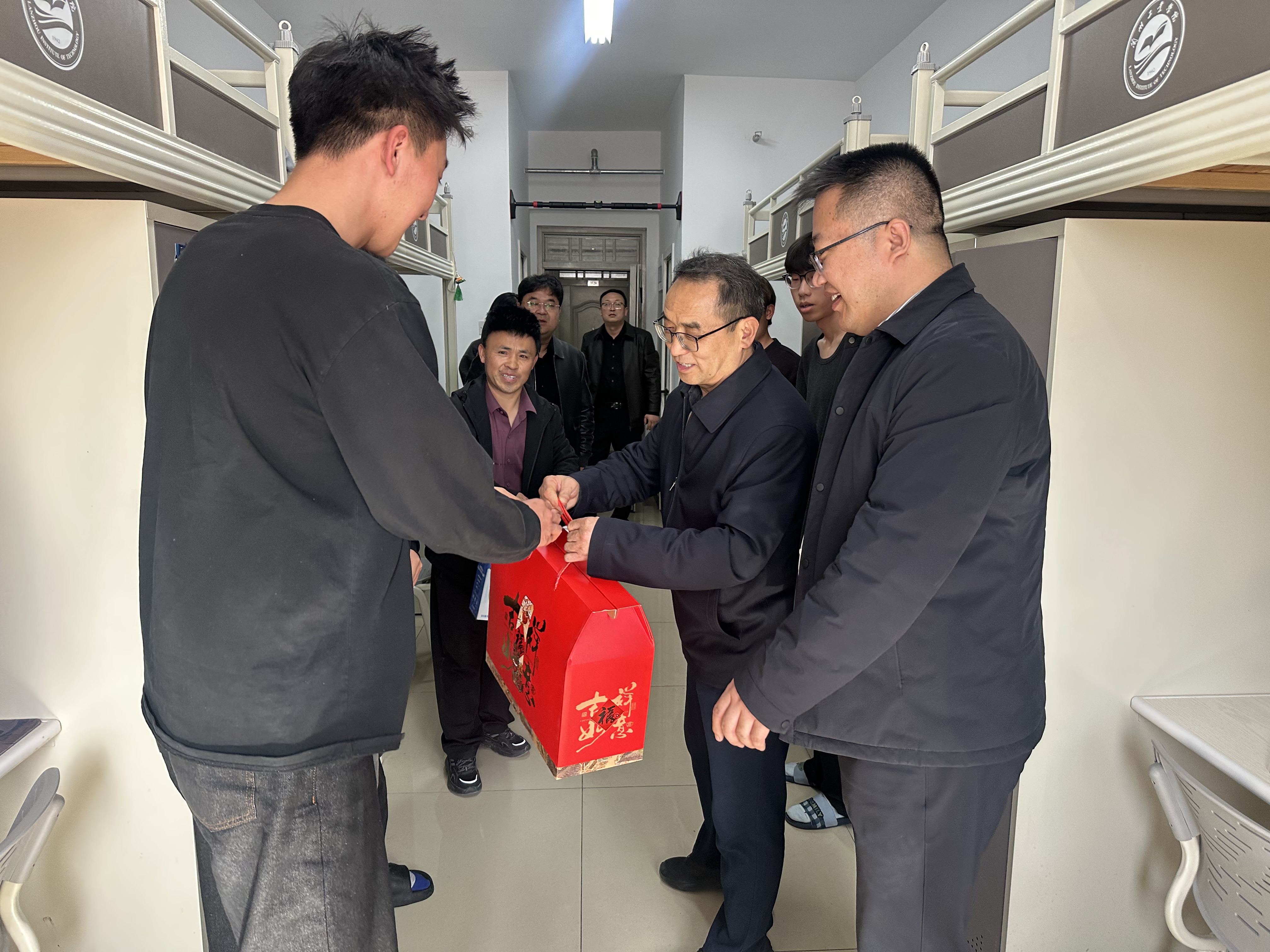 元宵佳节暖意浓,心系学子送温情。3月3日,正值丙午马年元宵佳节,学校党委副书记、校长刘新辉,副校长贾杰华深入机电工程学院、电气工程学院、电子信息工程学院学生宿舍,开展元宵节走访慰问活动,为同学们送上节日慰问品与真挚的元宵祝福。