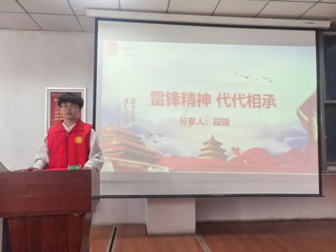分享会上,材料工程学院复合24班张坤、计算机与人工智能学院数科24班段瑞两位志愿者代表,通过系统阐释雷锋同志经典事迹与当代价值,结合自身参与的校园环境维护、公益义卖、社区服务等多维度志愿服务实践,深刻剖析雷锋精神的时代内涵。他们以真挚的情感讲述志愿服务带来的思想淬炼与成长感悟,向全体同学发出“践行雷锋精神当始于足下”的行动倡议。