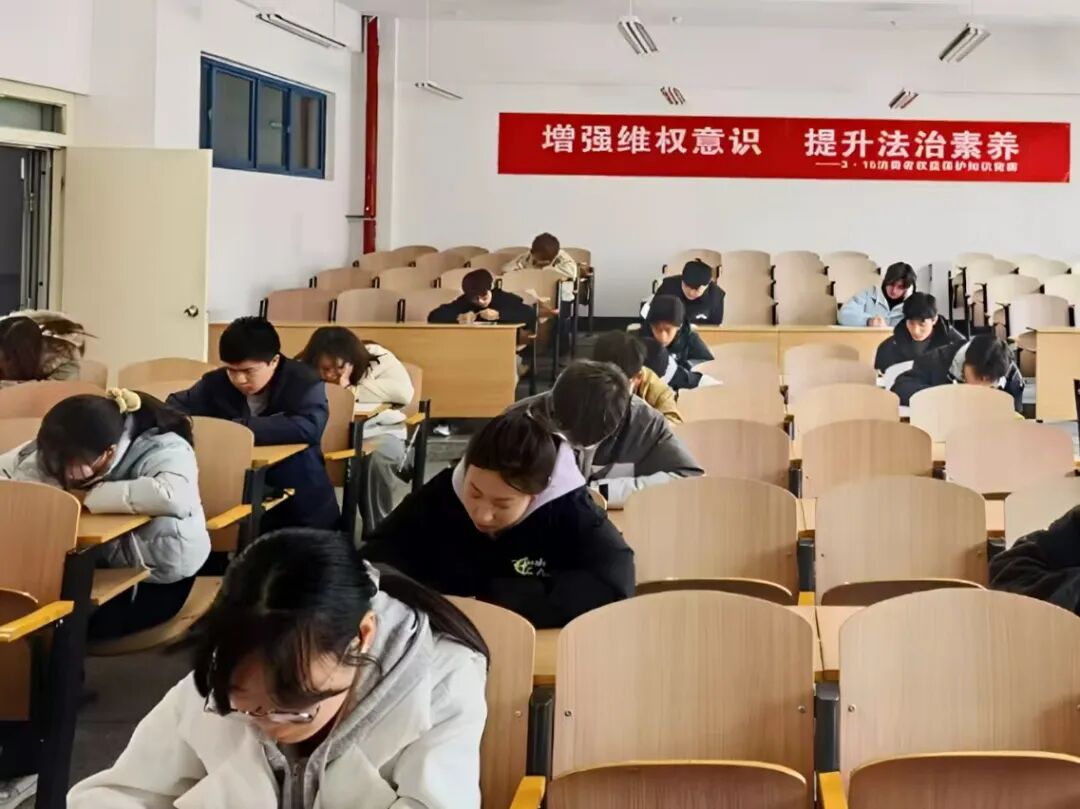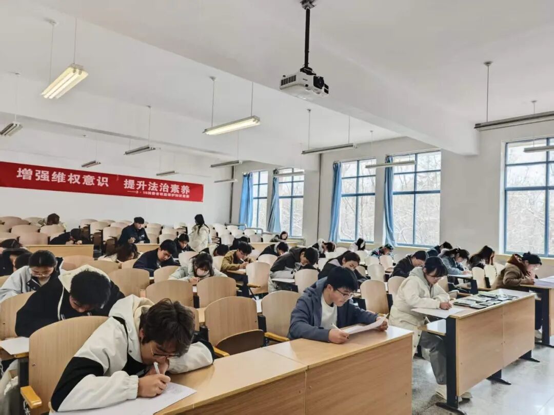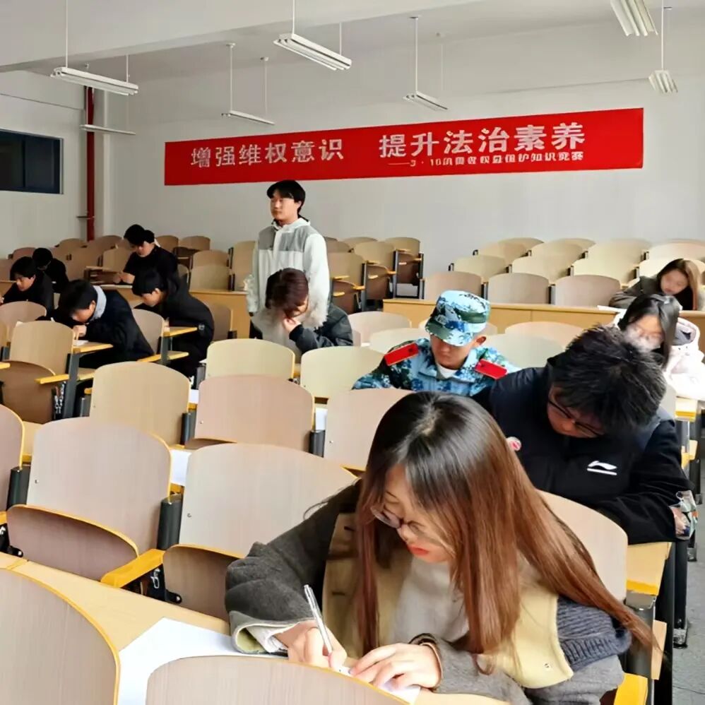 决赛现场,气氛紧张而热烈。选手们沉着冷静、对答如流,笔尖在答题卡上落下的沙沙声,既是知识的较量,更是责任的担当。经过严格的阅卷与评选,比赛最终决出一等奖3名、二等奖6名、三等奖9名。这场知识的盛宴,不仅充分展现了工院学子扎实的法律素养与敏锐的维权意识,更在校园内营造了“知权、懂权、护权、用权”的浓厚氛围,为构建和谐稳定、权益有保障的校园环境注入了强劲动力。