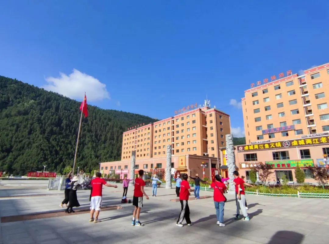 当地藏族民众在中心广场展示的民族舞蹈吸引了参观中的社会实践团队成员,成员们自发与民众一起舞蹈,虽然动作笨拙但社会实践团队成员认真学习的样子引得了当地藏族民众的热烈掌声。
