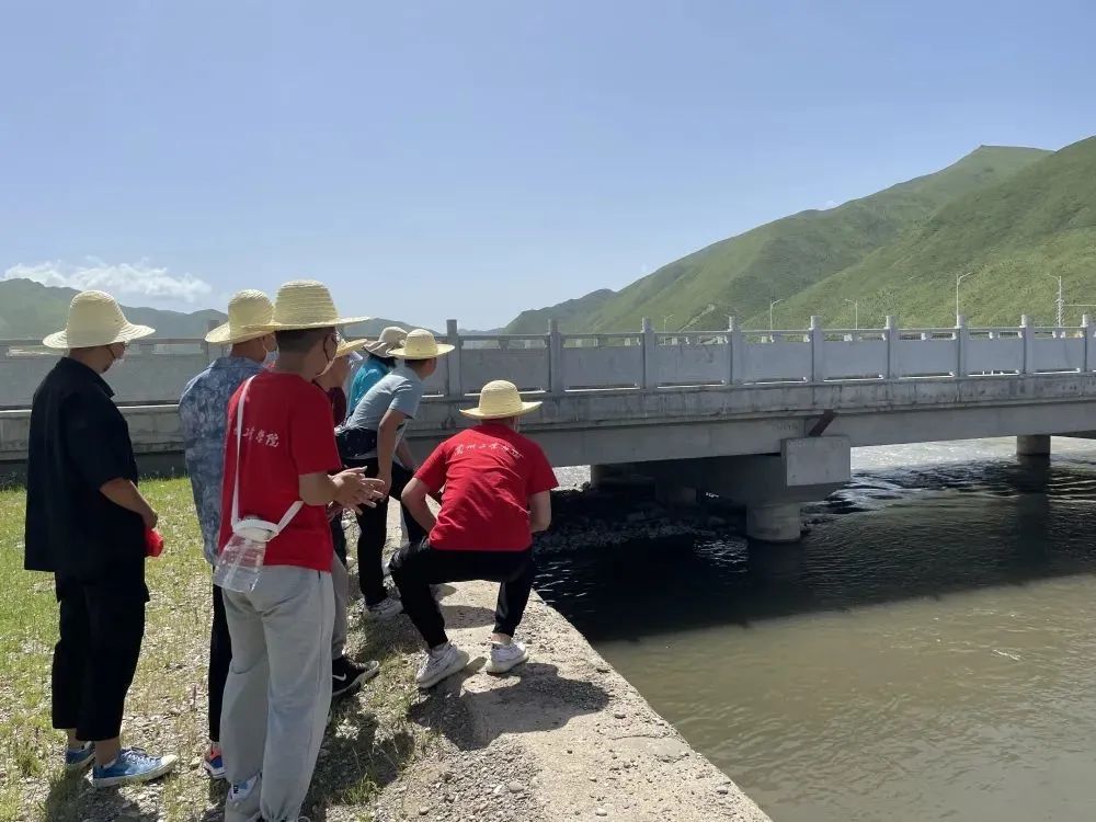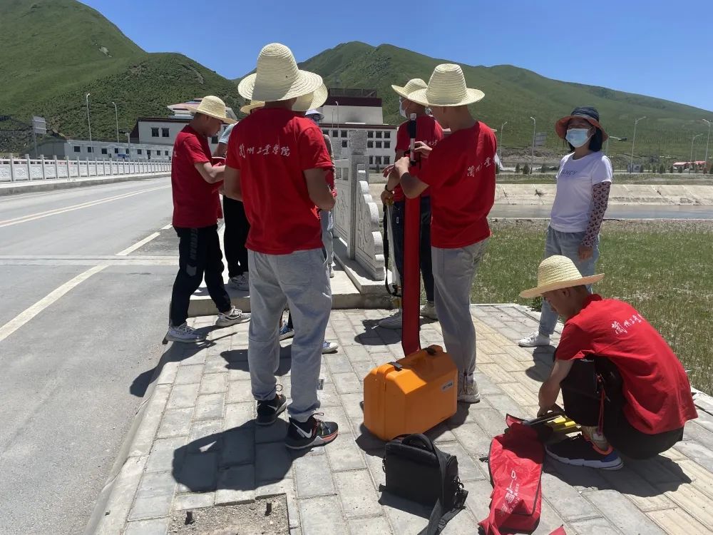 2022年7月6日上午土木工程学院赴碌曲县科技支农社会实践团继续前往碌曲洮河大桥,进行桥梁抗震设计的勘测。