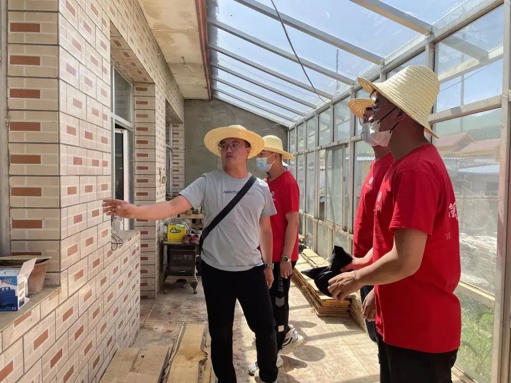 实践团队在工作人员的带领下来到当地人的自建房屋,工作人员对其房屋建筑进行讲解,了解基本结构。实践队员对住房进行规划房屋范围,并对旧房的墙体、基础提出了许多实用性改造建议。