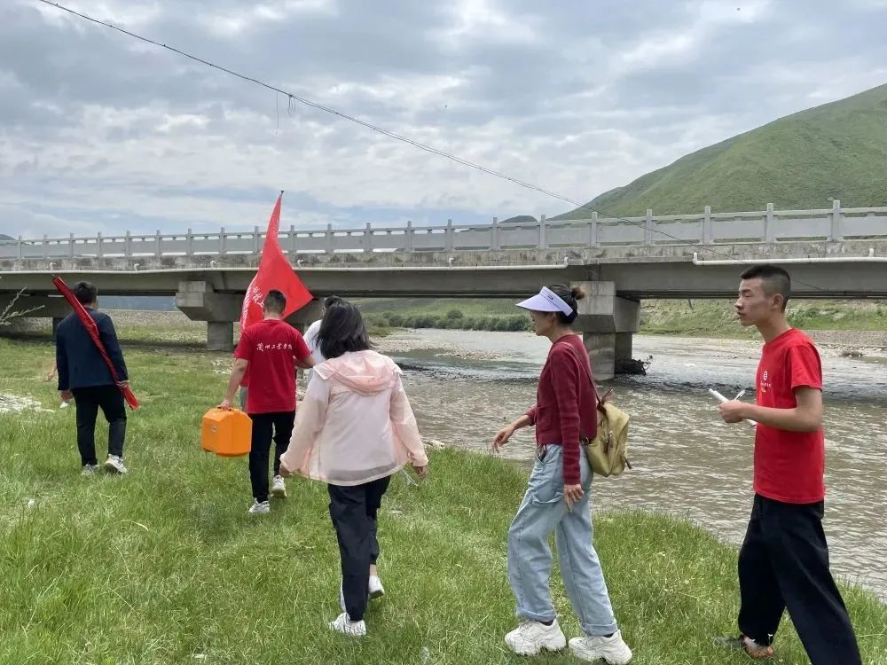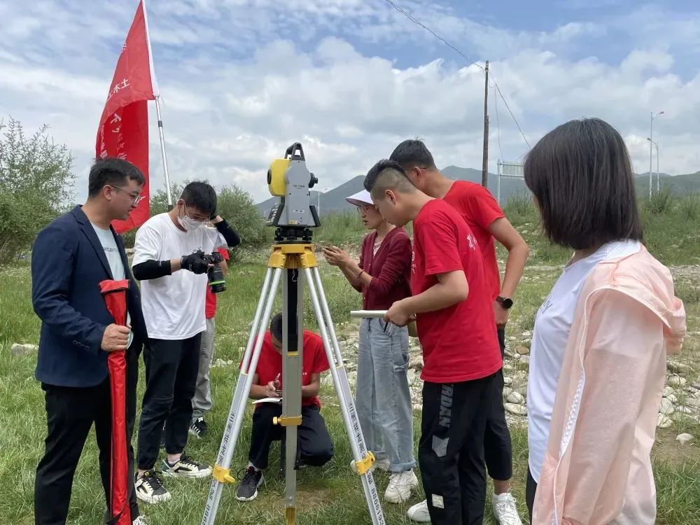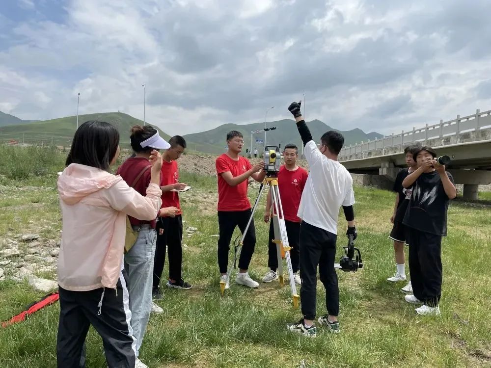 首先,实践团成员们同宣传部工作人员一同到洮河的另一座大桥,带队老师指导队员们寻找站点,架设仪器,对中整平,精确观测。操作行云流水,毫无停滞,由此可以看出他们对此是非常熟练的。