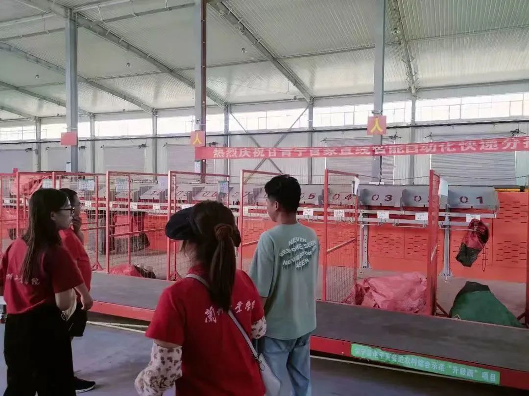 随后实践队伍来到了甘肃云之逸电子商务有限责任公司参观,在公司人员的带领下,实习团队成员参观了公司仓库、包装流水线及甘青宁首家直线智能自动化快递分拣线。