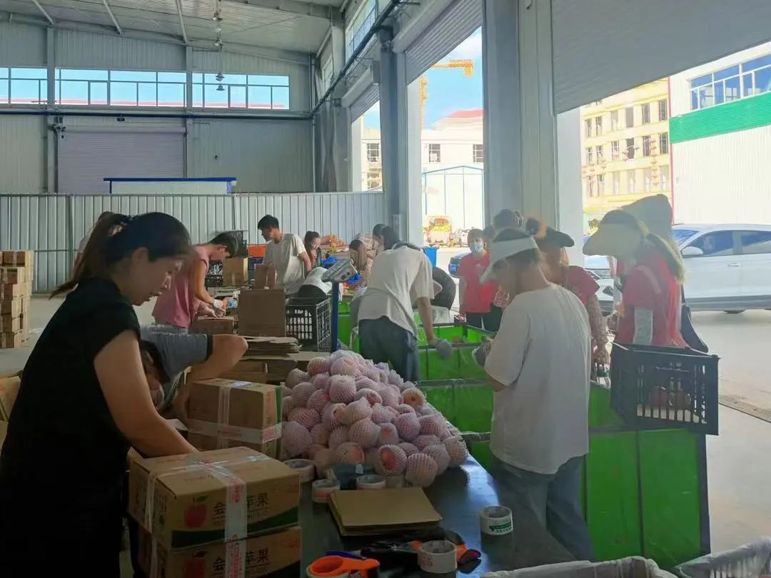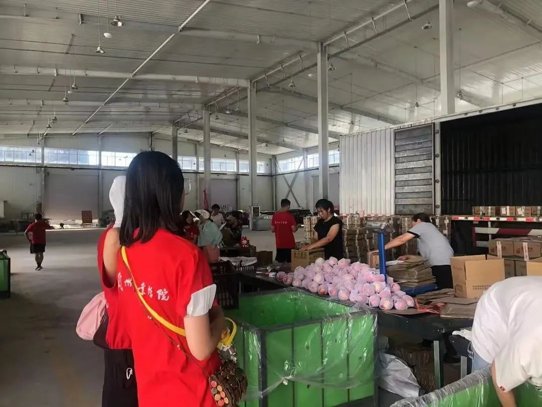 在包装流线上,实践队员看到工人们分工明确,井然有序地进行着苹果分拣,包装和装箱的工作。工人们对苹果质量的把控非常严格,包装和装箱工作也非常谨慎小心,把苹果的损耗降到了最低。很可惜没有看到自动化分拣线的运行场景,在公司人员的介绍下队员大致了解了分拣线的工作流程。