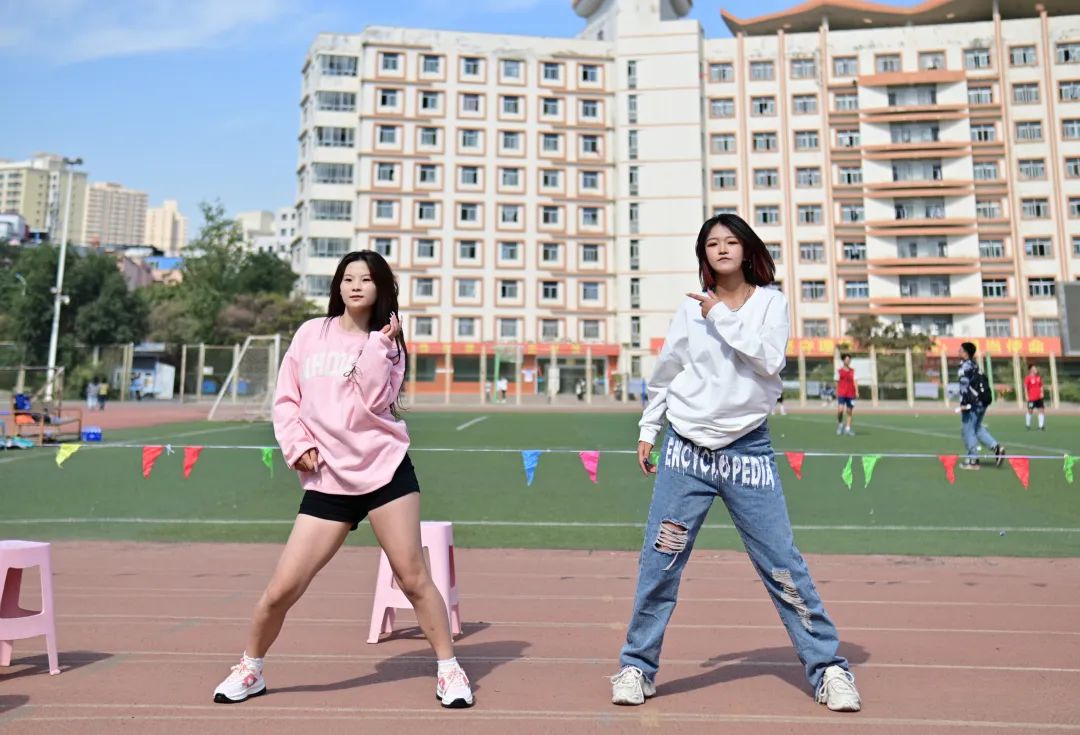 中场休息时间还有娱乐表演,赢得阵阵掌声与喝彩。毫不夸张的说,十月的天,是最靓丽的天,是最爽朗的天!同学们紧邻在蓝天下,共赏天地之美景,共观活动之奇妙,共闻乐声之回响。
