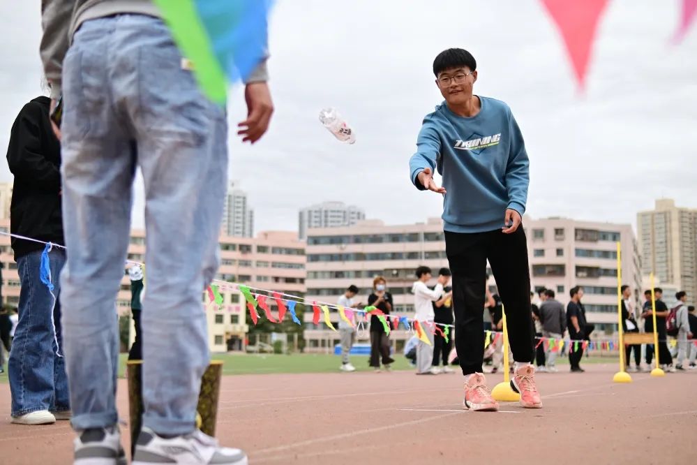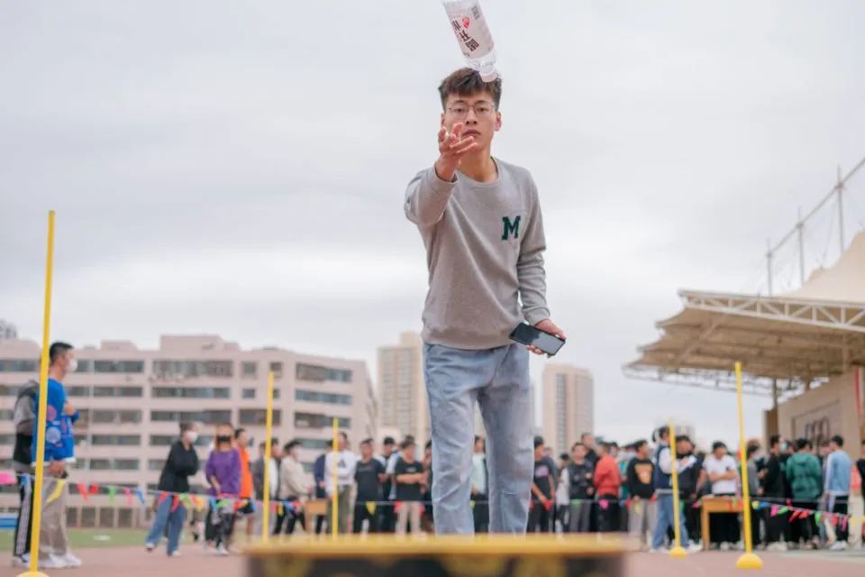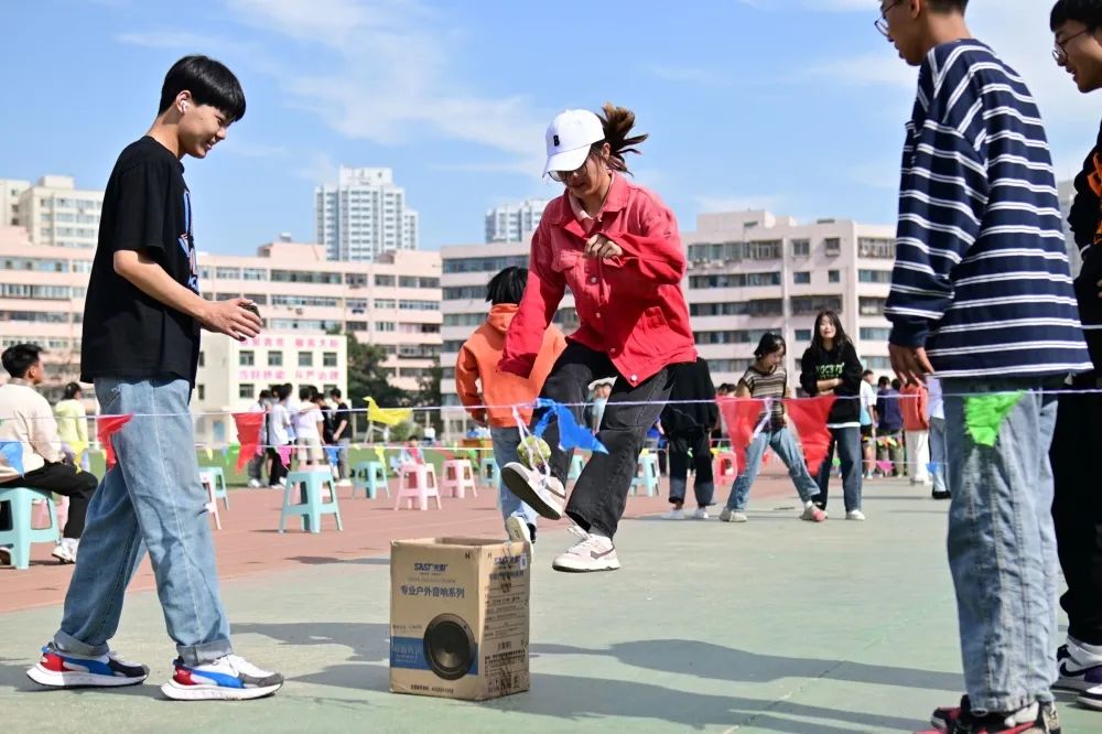 活动共分为六项,分别是“指压板挑战赛”、“赶猪进圈接力”、“沙包投篮”、“乒乓接龙”、“黄金搭档”和“运乒乓球游戏”。在游戏期间,同学们配合默契、团结一致,沉浸在有趣的游戏与队友的活力中,欢呼声、嬉戏声萦绕整个操场。