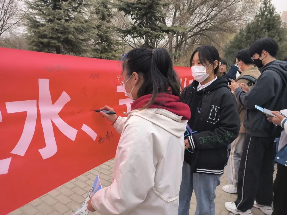 此次活动有各位师生积极响应,活动现场,各成员为前来的师生发放“世界水日”宣传资料,此次活动以“惜水,爱水,节水,从我做起”为主题,采取发放宣传单、扫码线上调查问卷的形式,为大家答疑解惑,让大家认识到节水的重要性,提高大学生的节约用水意识。带动全社会关注、支持和参与水资源保护与管理工作,进一步营造全社会珍惜水资源的法治环境。
