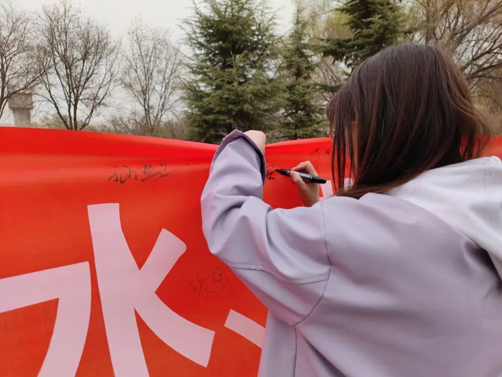 活动过程中同学们纷纷在横幅上签字。