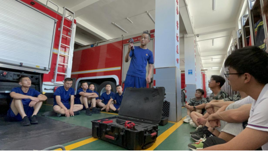 本次实践活动为期10天。活动期间,实践团同学入驻消防队,切身体验消防生活,包括规范作息、参加日常训练、帮助消防员进行车辆维护等。同学们根据住队观摩交流学习经验,将创新与实际相结合,以实战与消防员安全为抓手,顺应时代发展展示多款“创新”消防装备器材,“产学研用”聚合效应打造消防救援装备器材新高地。在理论知识与消防员实战经验的支撑下,同学们提出多条消防装备创新思路,获得了大队领导的一致认可。