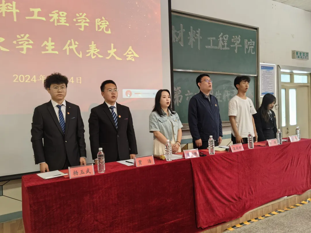 2024年5月14日,材料工程学院第六次学生代表大会在新阶梯102成功召开。各班推举产生的共104名学生代表参加了会议。材料工程学院党委副书记、副院长龚成功,学院团委书记宋雪娇,校学生会轮值主席张耀出席了会议。大会由宋雪娇主持。