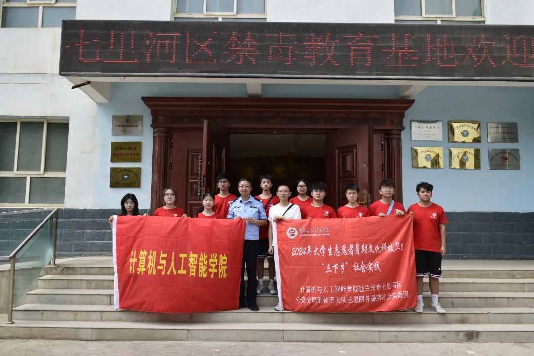 7月14日,在计算机与人工智能学院暑期社会实践团指导老师张云天、徐立龙强调实践活动所需注意事项及相关事宜后,带领实践团成员按计划前往兰州市七里河区公安分局刑侦五大队。