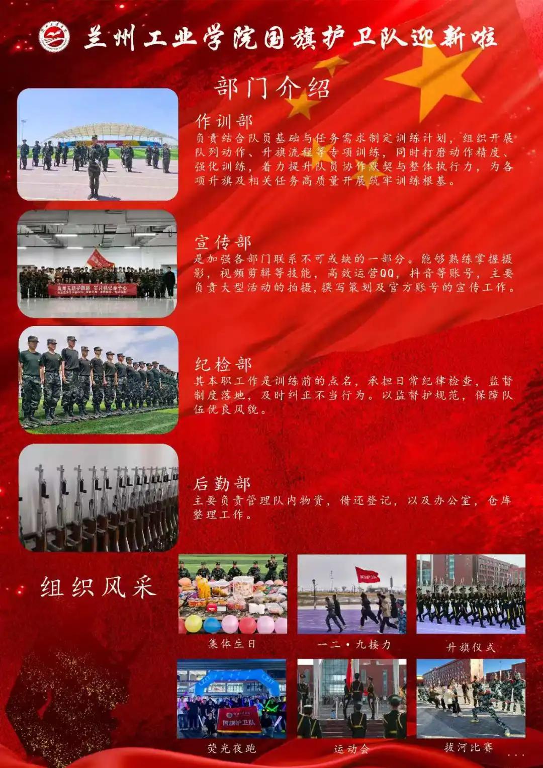 国旗护卫队:护卫国旗尊严,厚植家国情怀,锤炼钢铁意志。