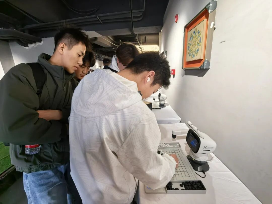 在主展区中,人形机器人G1、智能机器狗、群舞机器人等前沿成果引发阵阵惊叹。青年学生主动参与人机对战、机械绘画等互动环节,边观察边记录,在实践交流中深化对智能技术应用场景的理解。活动现场,大家踊跃提问、积极探讨,展现出浓厚的科研兴趣与探索精神,体现了团组织凝聚青年、服务成长的扎实成效。
