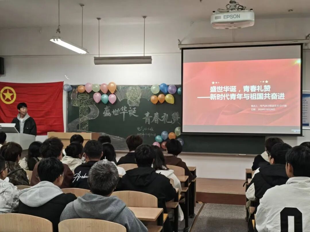 为深入贯彻落实党的二十大精神,引导青年学生深刻把握中国式现代化的核心要义与时代价值,进一步明确自身肩负的历史使命,筑牢理想信念根基,努力成长为担当民族复兴大任的时代新人,电气工程学院团委、学生会于10月31日晚20时,在第四教学楼举办以“强国复兴”为主题的团日活动。2025级全体学生积极参加。