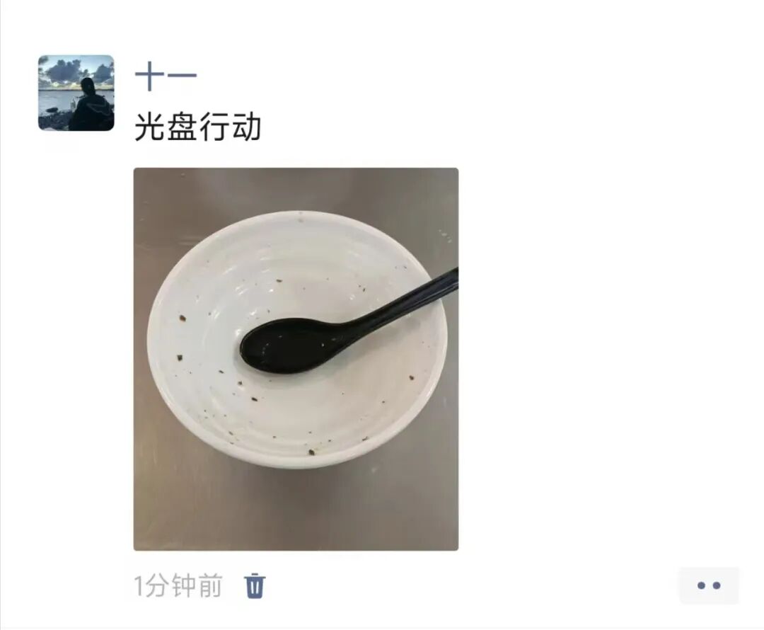 自活动开展以来,学生响应积极,参与踊跃。从最初的尝试到自觉的坚持,从个人的习惯到群体的共鸣,“光盘”逐渐融入校园日常。随着打卡活动推进,参与范围不断扩大,覆盖不同年级、不同专业的学生群体。食堂里,按需取餐的身影越来越多;朋友圈中,“光盘”打卡成为同学们分享的日常内容。大家在互动中相互鼓励,在坚持中涵养勤俭品格。许多同学坦言,起初只为完成任务,但在持续参与中逐渐形成自觉——打饭时下意识衡量食量,餐后习惯性检查餐盘。这种从外部约束到内在养成的转变,正是活动最宝贵的收获。