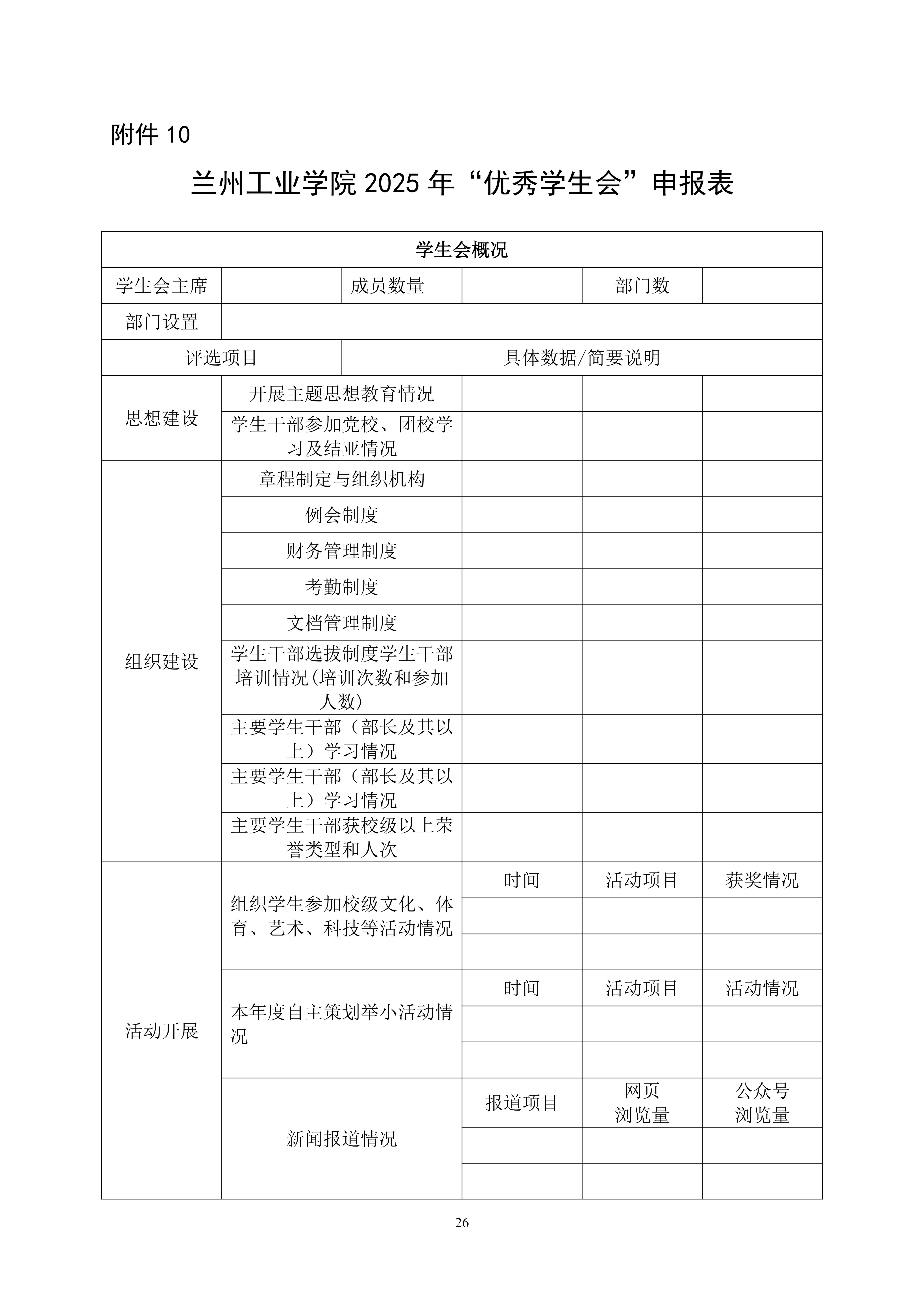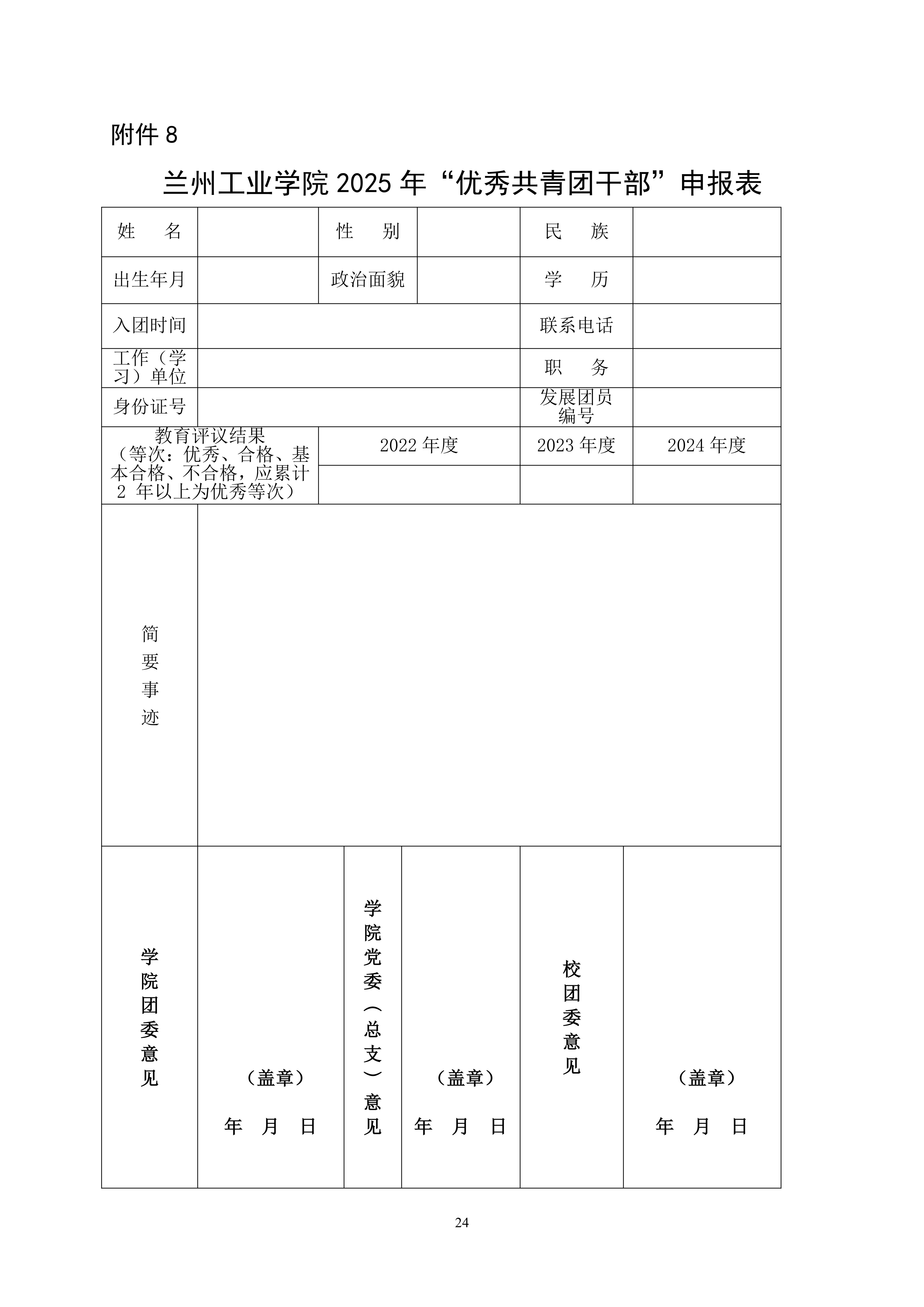 关于开展兰州工业学院 2025 年共青团、学生会工作先进