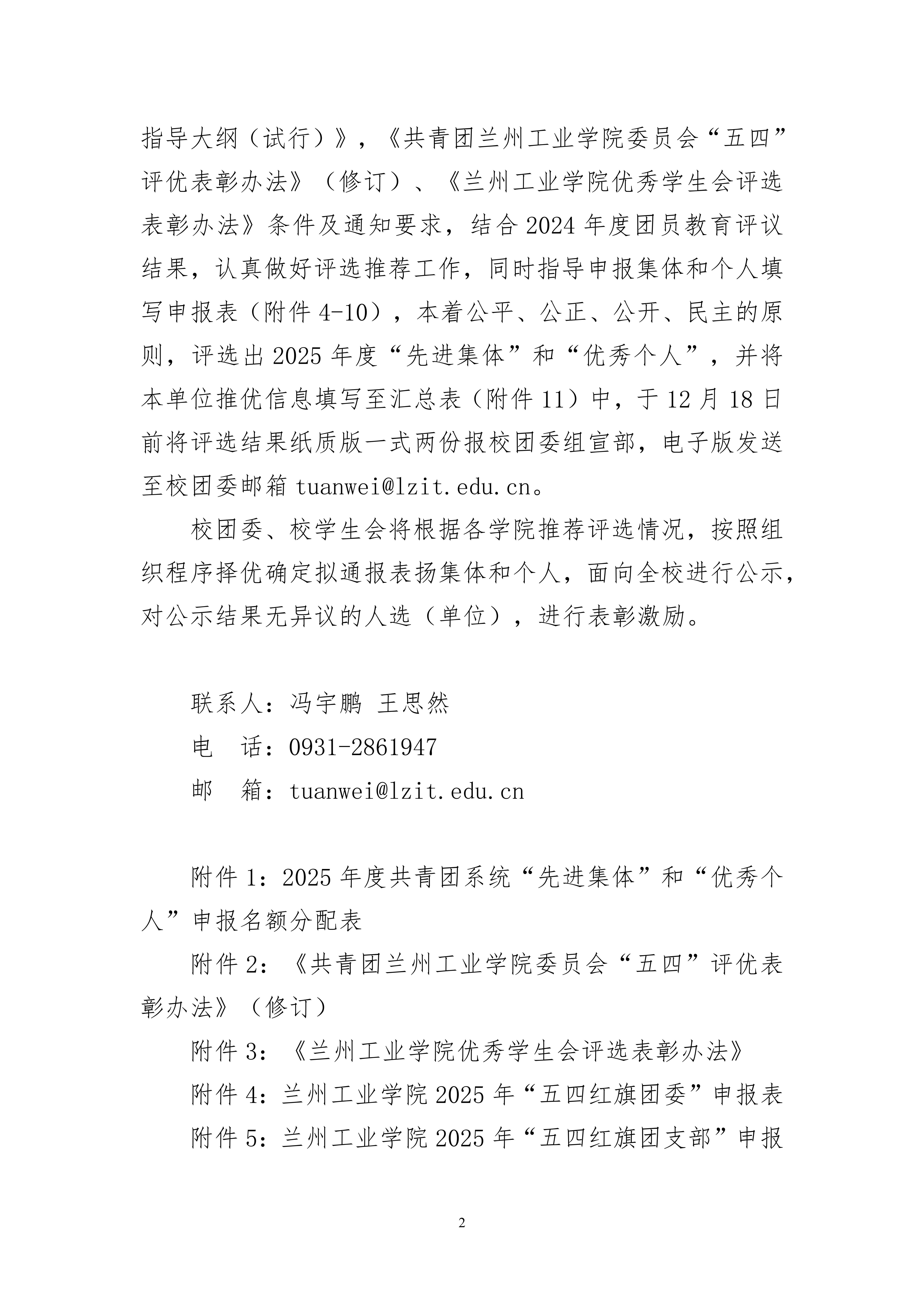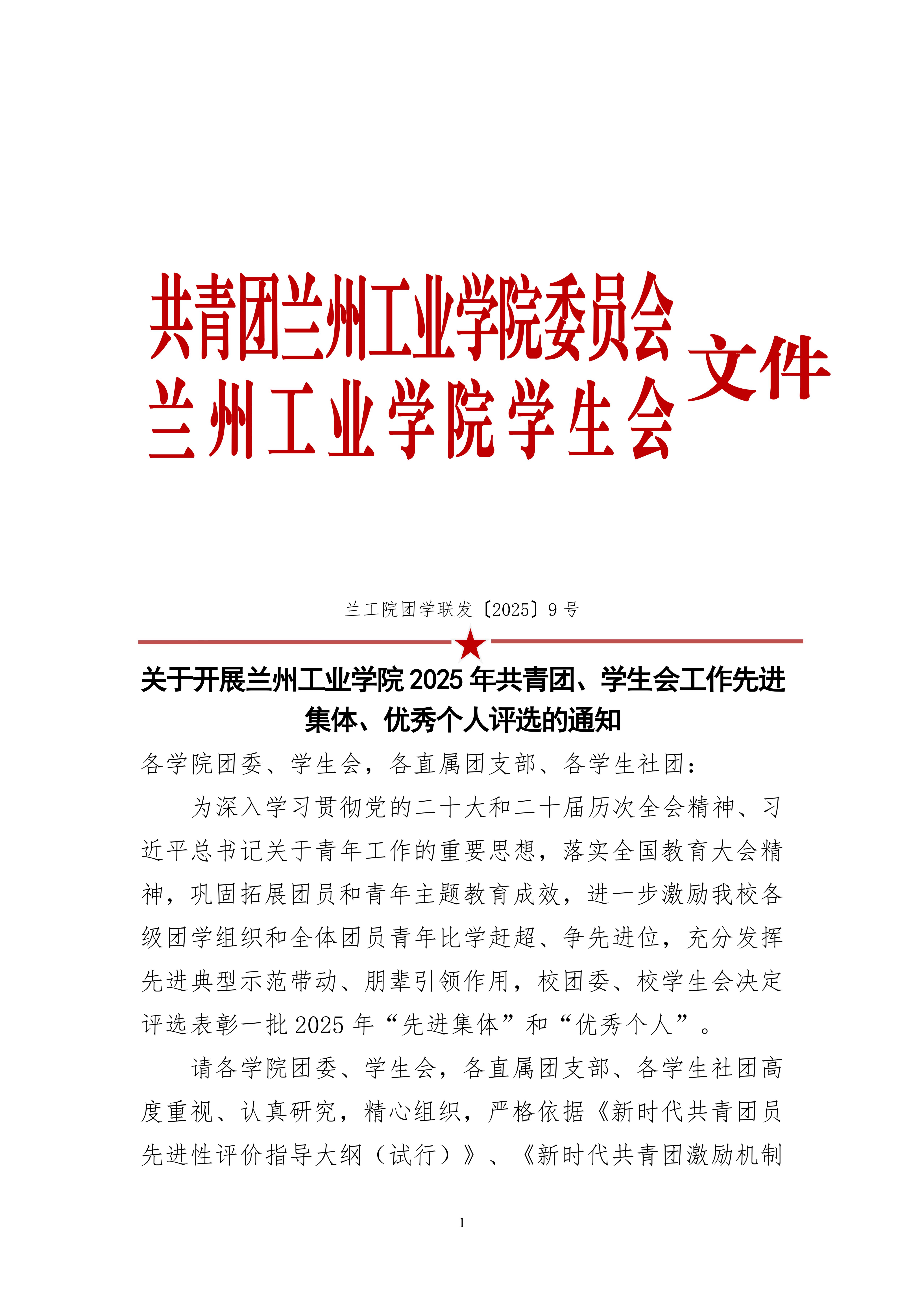 关于开展兰州工业学院 2025 年共青团、学生会工作先进 集体、优秀个人评选的通知