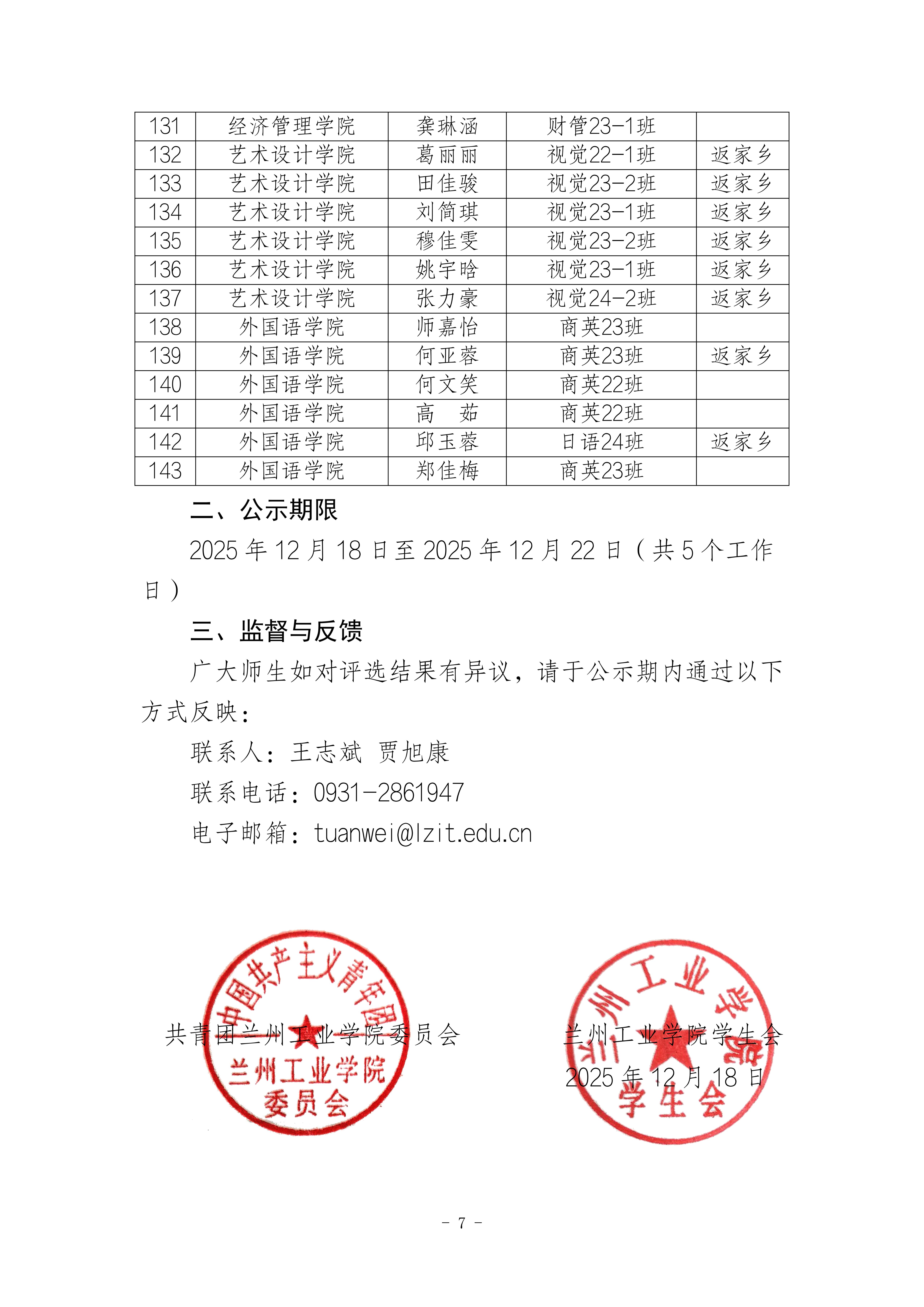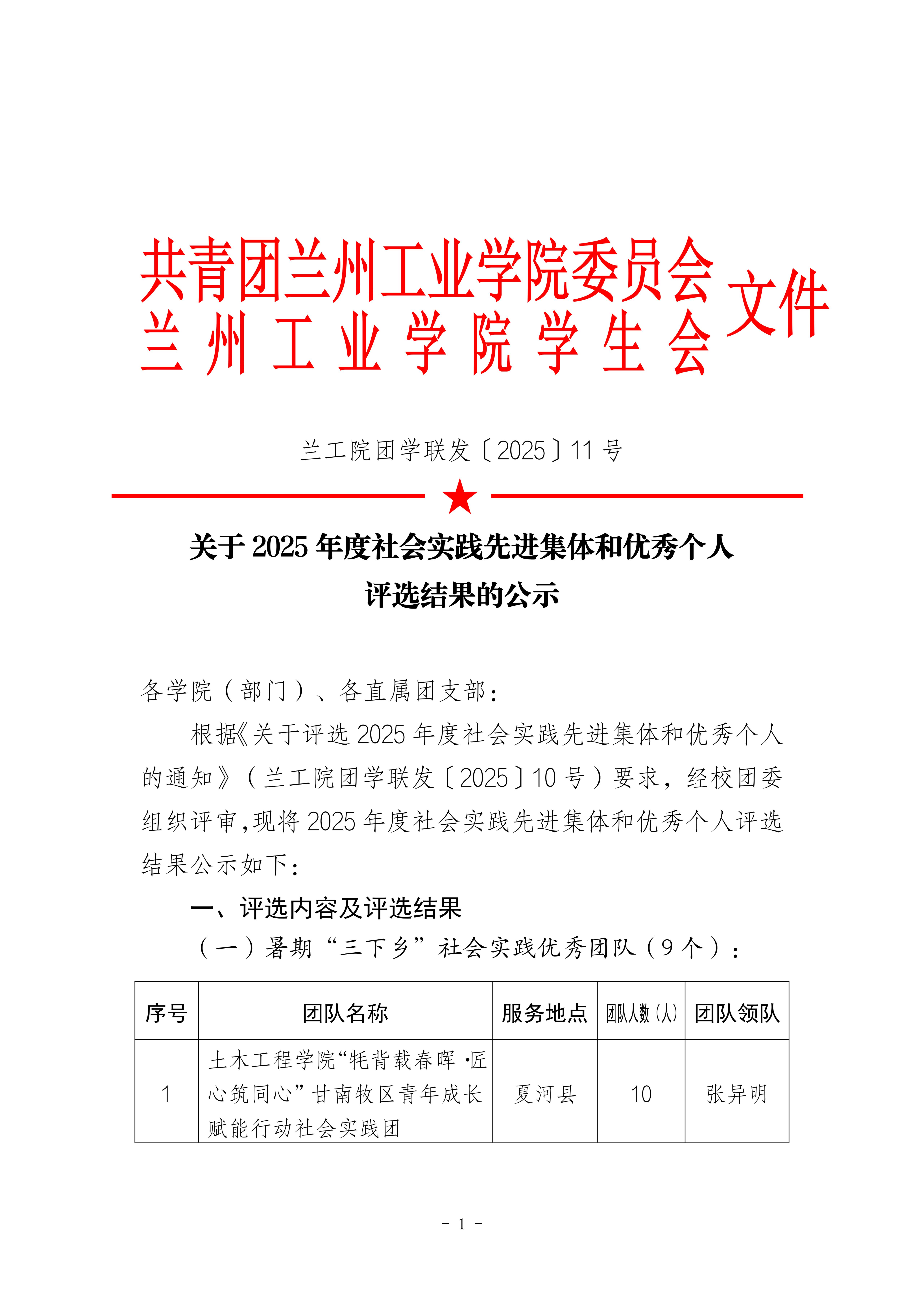 关于 2025 年度社会实践先进集体和优秀个人评选结果的公示