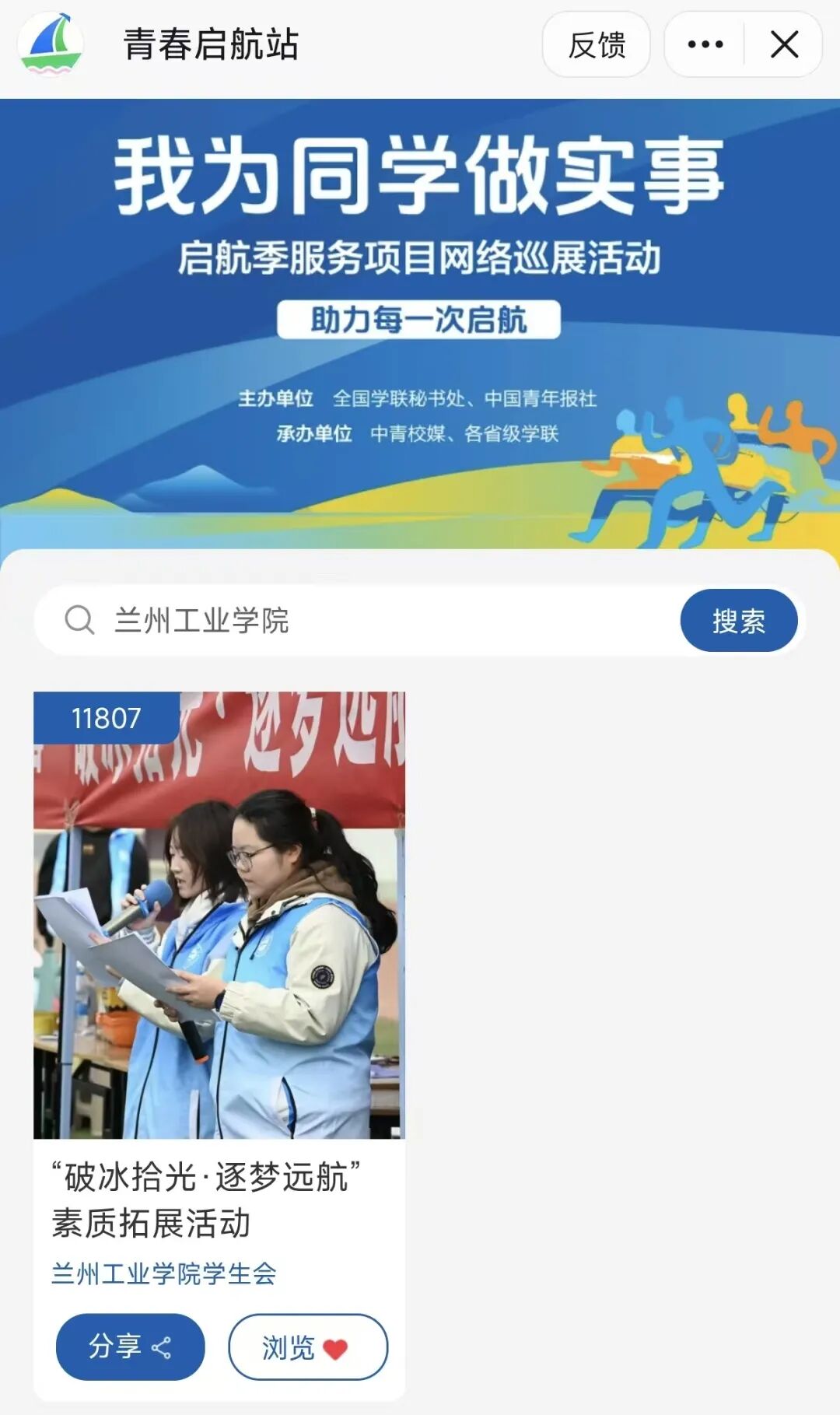 进入全国高校学生会组织“我为同学做实事”启航季服务项目网络巡展活动平台