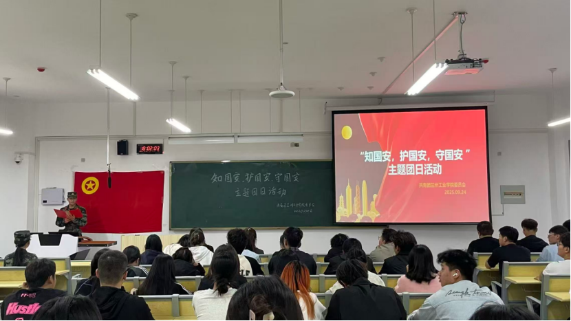 2025年9月24日,共青团兰州工业学院委员会组织开展,由国旗护卫队、退役军人协会承办“知国安、护国安、守国安”主题团日活动在公共教学楼D110开展。通过退役校友的军旅叙事与校园安全场景相互映照,旨在让青年学子“知”“行”合一,深刻感知自身与国防安全的紧密关联。第十四期青马班成员,各学生组织代表近100余人参与活动。