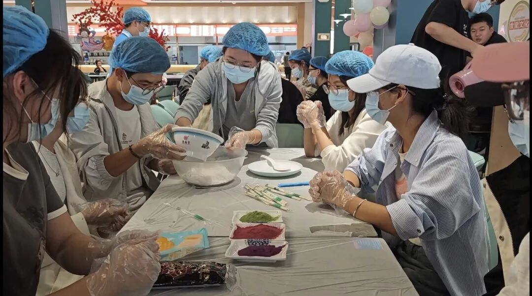 DIY月饼环节是活动的“暖心亮点”。老师和同学们一起亲手体验冰皮月饼的制作全过程——揉面时的专注、包馅时的巧思、压模成型时的期待,每一步都充满乐趣。制作完成后,大家纷纷与自己的“中秋作品”合影,更将封装好的月饼带回宿舍,与室友分享这份专属节日甜蜜。