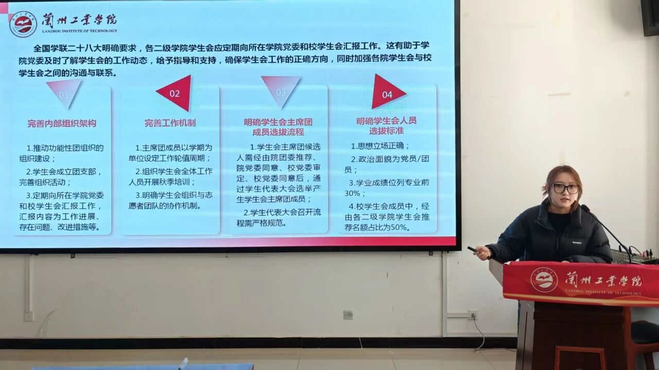 此次秋季培训会的顺利举办,进一步统一了我校学生干部的思想、凝聚了共识、明确了今后工作方向,为校院两级学生会协同发力、高质量推进后续工作奠定了坚实基础。未来,兰州工业学院学生会将继续深化改革、从严治会,切实履职尽责,为同学成长成才与学校高质量发展贡献青春力量。